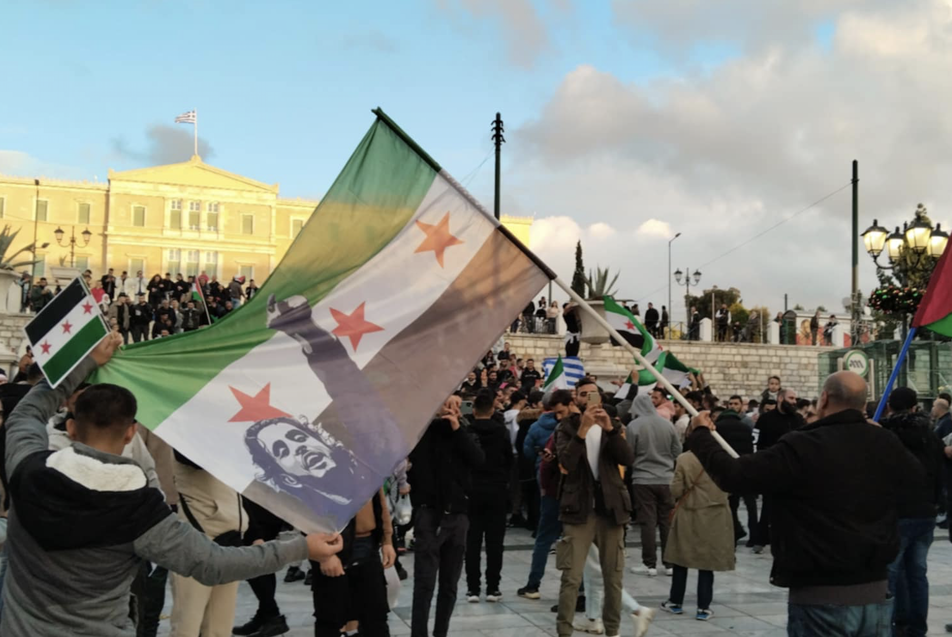 Εκατοντάδες Σύροι που ζουν στην Αθήνα συγκεντρώθηκαν νωρίς το απόγευμα της Κυριακής στο Σύνταγμα προκειμένου να πανηγυρίσουν την πτώση του καθεστώτος Άσαντ.