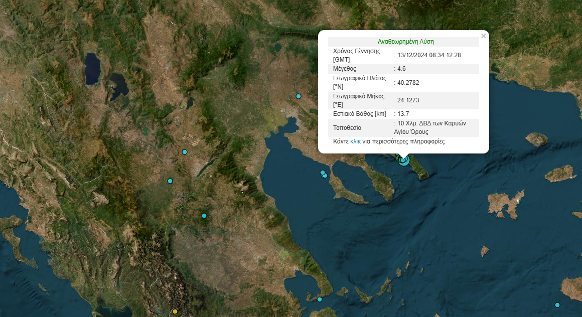 Σεισμός σημειώθηκε σήμερα, Παρασκευή, το πρωί στο Αγιον Ορος.