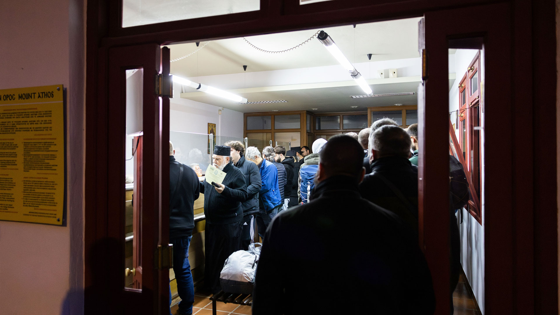 Είναι πέντε το πρωί και στην κορυφή του Αθω δεν έχει χαράξει. Στο λιμανάκι της Ουρανούπολης ανθρώπινες φιγούρες ξεπροβάλλουν στο μισοσκόταδο από τα δρομάκια και κατευθύνονται παρέες παρέες στο κέντρο της πόλης, όπου στεγάζεται το γραφείο έκδοσης διαμονητηρίων για να περάσουν στο Αγιον Ορος. Γρήγορα σχηματίζεται ουρά δεκάδων μέτρων και εντός του γραφείου με τους δύο υπαλλήλους της ιεράς κοινότητας, ο εκτυπωτής έχει πάρει φωτιά. Ταχύπλοα και το καράβι της γραμμής περιμένουν τους επισκέπτες για να τους μεταφέρουν στο λιμανάκι της Δάφνης, απ’ όπου ξεκινάει το προσκύνημα. Είναι όλοι τους νέα παιδιά που κατέφθασαν από τη Ρουμανία για «μια κατάθεση ψυχής» στην εικόνα της Παναγίας, μέσα στο «περιβόλι» της.