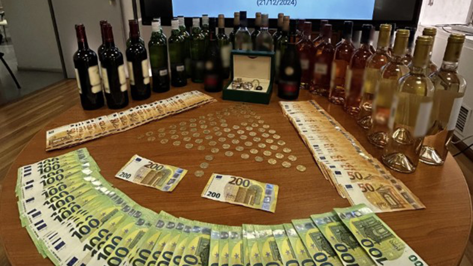 Βρέθηκαν και κατασχέθηκαν, μεταξύ άλλων, 43.116 φιάλες αλκοολούχων ποτών διαφορετικών μαρκών, το συνολικό ποσό των 122.105 ευρώ, 91 χρυσές λίρες, 2 ρολόγια υψηλής ωρολογοποιίας, τράκτορας, επικαθήμενο και κλειστού τύπου φορτηγό (βαν).