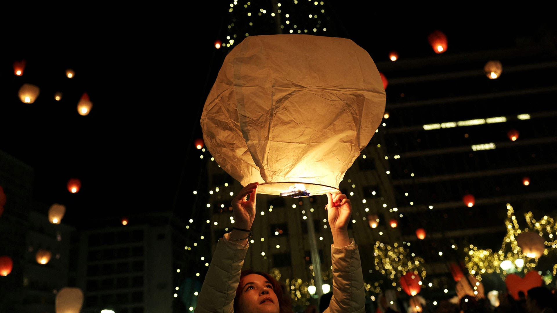 Τα διαχρονικά μηνύματα για ελπίδα και ειρήνη και τα 1.500 χάρτινα βιοδιασπώμενα φαναράκια, συνόδευσαν οι γιορτινές μουσικές επιλογές που επιμελήθηκε ο ραδιοφωνικός σταθμός της πόλης «Αθήνα 9.84» και η παραγωγός Αριστέα Γιάννου.