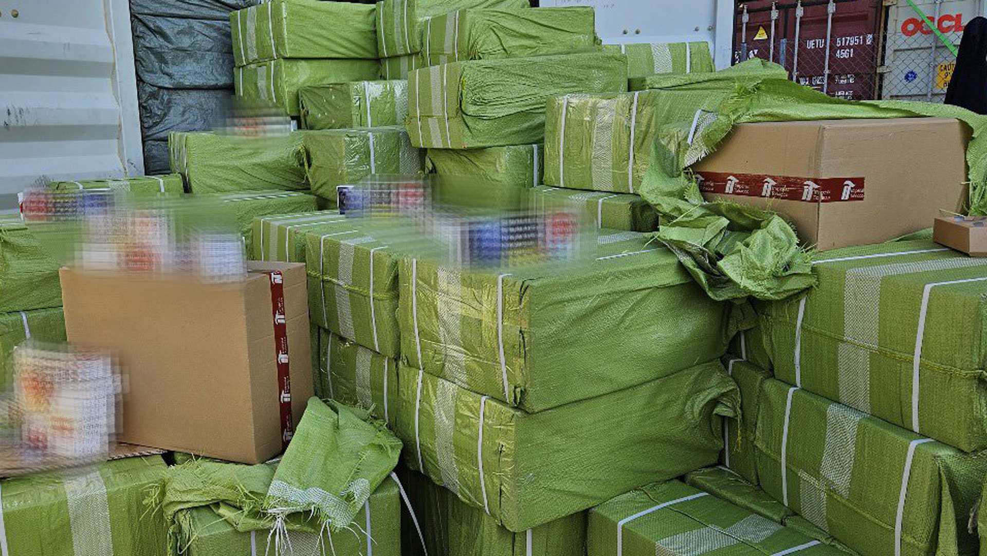 «Διαπιστώθηκε ότι στο εμπορευματοκιβώτιο υπήρχε φορτίο απόκρυψης (βαλίτσες τρόλεϊ), πίσω από το οποίο είχαν τοποθετηθεί 939 χαρτοκιβώτια με 469.500 πακέτα των είκοσι τσιγάρων έκαστο», επισημαίνει το Λιμενικό Σώμα.