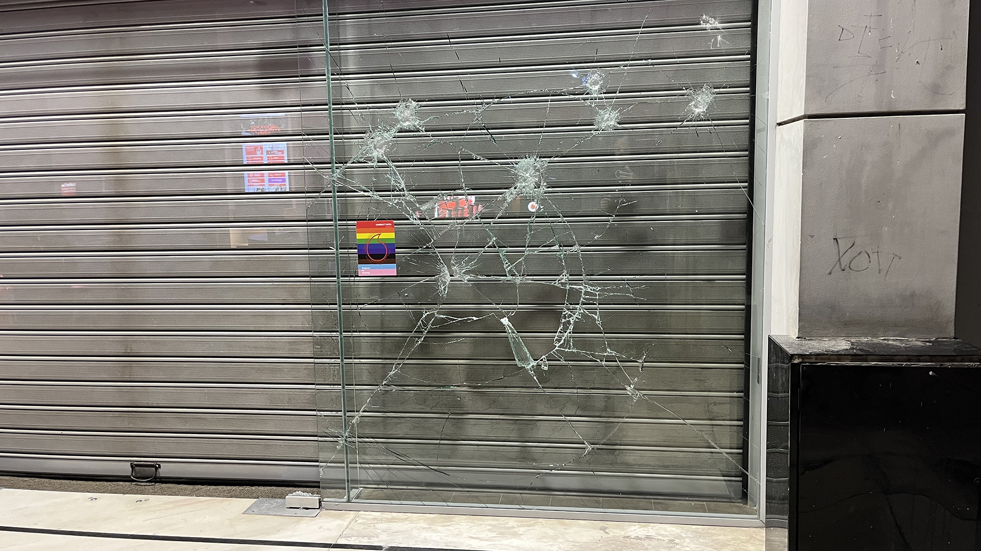 Φθορές φέρεται πως έχουν καταγραφεί σε περίπου 8 καταστήματα, συγκεκριμένα σε δύο υποκαταστήματα τραπεζών, δύο καταστήματα κινητής, δύο σουπερμάρκετ και δύο καφετέριες.