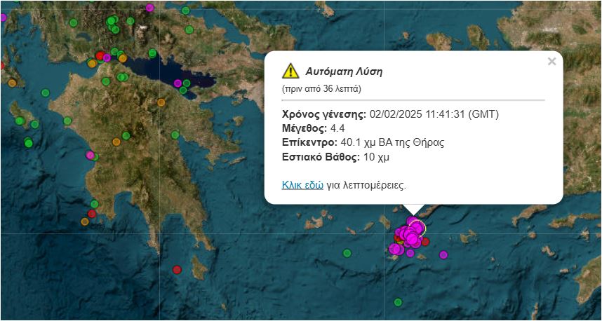 Σε διάστημα μόλις 6 λεπτών σημειώθηκαν δύο νέες σεισμικής δονήσεις. Συγκεκριμένα, σύμφωνα με το Γεωδυναμικό Ινστιτούτο του Εθνικού Αστεροσκοπείου Αθηνών στις 13:41, το σεισμολογικό δίκτυο κατέγραψε σεισμική δόνηση με μέγεθος 4,4 στην κλίμακα Ρίχτερ.