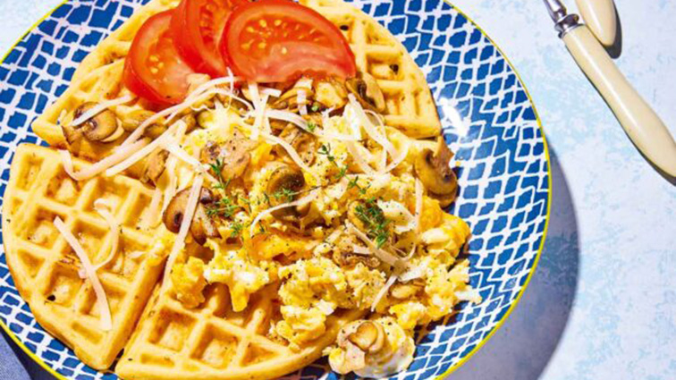 - Σερβίρουμε τις βάφλες με σαλάτα ή σούπα (ως συνοδευτικό) ή με αυγά σκραμπλ ή μανιτάρια (ως σνακ).