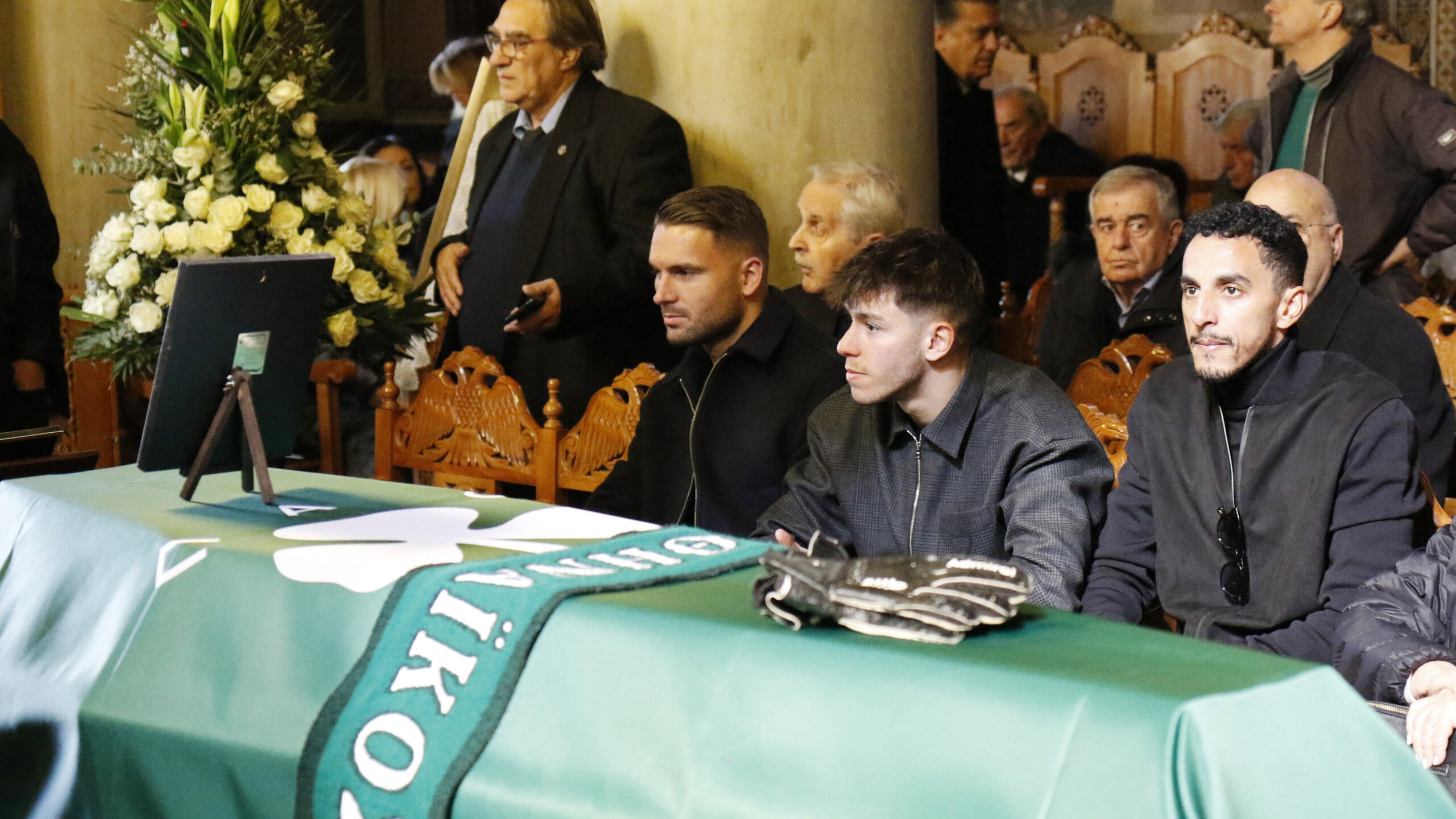 Από νωρίς, στον ιερό ναό του Αγίου Δημητρίου άρχισαν να εμφανίζονται οπαδοί του Παναθηναϊκού, για να αποτίσουν φόρο τιμής στο «πουλί», παλιοί συμπαίκτες του αλλά και βετεράνοι ποδοσφαιριστές της ομάδας, καθώς και μέλη της οικογένειας του Ατρομήτου, τον οποίο επίσης υπηρέτησε.