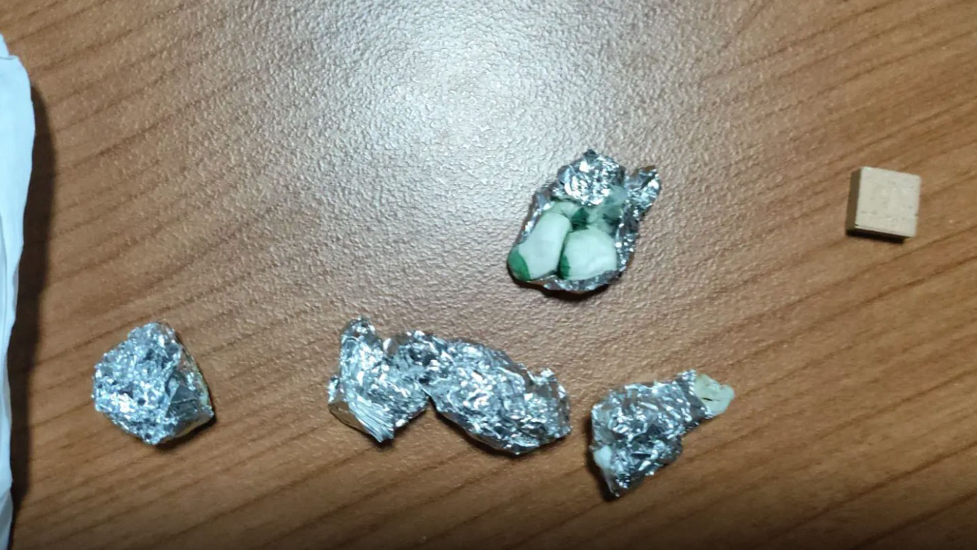 Σε σωματικές έρευνες που πραγματοποιήθηκαν βρέθηκαν και κατασχέθηκαν μαχαίρι συνολικού μήκους 28,5 εκατοστών, καθώς και κρυμμένες σε εσώρουχο και πορτοφόλι συσκευασίες με κοκαΐνη συνολικού μεικτού βάρους 3,92 γραμμαρίων και δισκίο ναρκωτικής ουσίας που, κατά πληροφορίες, έφερε την ένδειξη «Tik Tok».