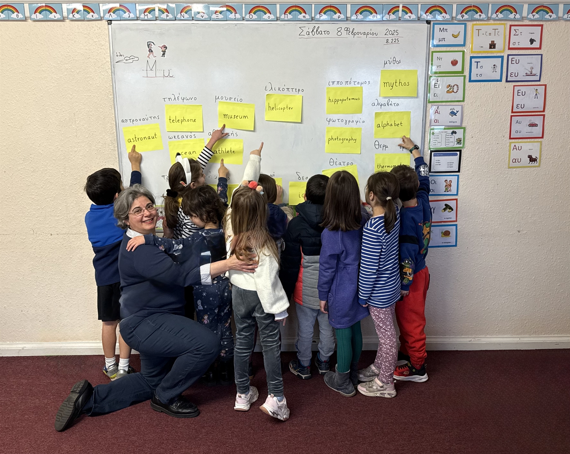 «Προσέξατε ότι τα πιο πολλά παιδιά κάνουν μάθημα με τα μπουφάν;», με ρωτάει ο Σπύρος Ρουμανέας, ειδικός σύμβουλος αντιμετώπισης οικονομικού εγκλήματος. «Τα χρήματα δεν επαρκούν για θέρμανση. Μας πονάει η έλλειψη υποστήριξης, σας παρακαλώ να το γράψετε. Ακούμε την κουβέντα που γίνεται στην Ελλάδα για το brain gain και γελάμε πικρά. Κούφιες λέξεις, άνευ περιεχομένου…». Μπαίνω στην αίθουσα του νηπιαγωγείου. Η εκπαιδευτικός Νόνη Μιχαηλίδου έχει γράψει στον πίνακα αγγλικές λέξεις με ελληνική ρίζα: astronaut-αστροναύτης, telephone-τηλέφωνο, theatre-θέατρο, helicopter-ελικόπτερο, μεταξύ άλλων. Τα παιδιά είναι ενθουσιασμένα. «Πείτε καλημέρα στην επισκέπτριά μας», τα παροτρύνει η κυρία Μιχαηλίδου. «Καλημεεέρα, κυρία Τασούλααα», λένε όλα μαζί τραγουδιστά. Μ’ αυτή τη μουσική στα αυτιά μου φεύγω για το επόμενο ραντεβού: στο φημισμένο Cavendish Laboratory του Πανεπιστημίου Κέμπριτζ.