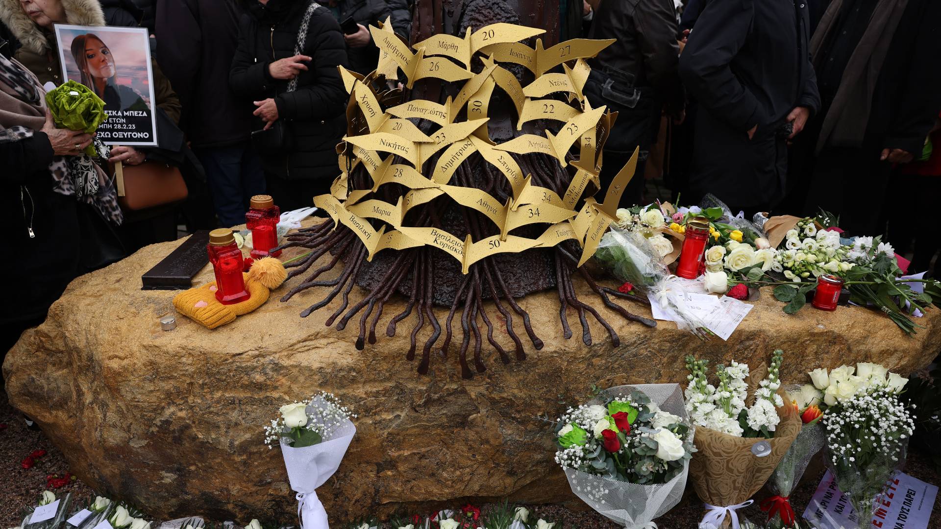 Ακολούθησε τρισάγιο στις γραμμές του σιδηροδρομικού σταθμού ενώ διαβάστηκαν τα ονόματα των θυμάτων.