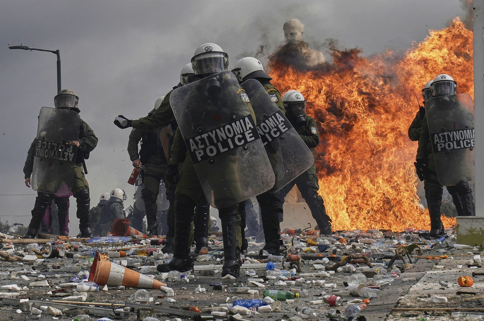 Στις 9.30 το πρωί της 28ης Φεβρουαρίου και ενώ στην πλατεία Συντάγματος είχαν ήδη αρχίσει να συγκεντρώνονται χιλιάδες διαδηλωτές, μοτοσικλετιστές της ομάδας ΔΙ.ΑΣ. εντόπισαν στη συμβολή της λεωφόρου Αλεξάνδρας με την οδό Δρόση δύο νεαρούς, 20 και 21 ετών, σε ένα σκούτερ Piaggio. Ο έλεγχός τους θα μπορούσε να θεωρηθεί τυχαίος, εάν οι δύο νεαροί δεν είχαν στο πρόσφατο παρελθόν κατηγορηθεί (σε βαθμό πλημμελήματος) για φθορές σε υπό κατάληψη κτίριο της Πρυτανείας. Μόλις είδαν τους αστυνομικούς ανέπτυξαν ταχύτητα και προσπάθησαν να διαφύγουν. Στη συμβολή της λεωφόρου Αλεξάνδρας με την οδό Μουστοξύδη πέταξαν στο οδόστρωμα δύο τσάντες, με τους αστυνομικούς πάντως να τους ακινητοποιούν μερικές δεκάδες μέτρα πιο μακριά, στην είσοδο του Πεδίου του Αρεως. Σε καθεμιά από τις δύο τσάντες οι αστυνομικοί βρήκαν και κατάσχεσαν πέντε μολότοφ, ορισμένες από τις οποίες «εκρηκτικές», δηλαδή με μια κροτίδα στερεωμένη με κολλητική ταινία στο πλάι του μπουκαλιού. Οι συγκεκριμένοι δύο νεαροί δεν ήταν οι μόνοι που εντοπίστηκαν και συνελήφθησαν από τις ομάδες προελέγχου.