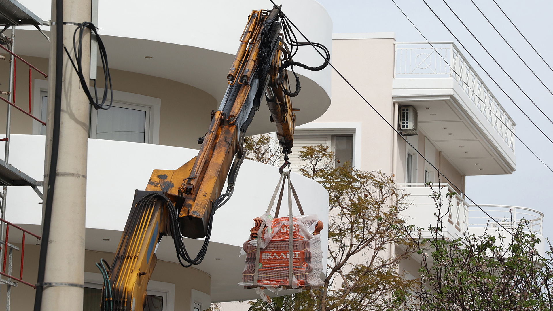 Σύμφωνα με την ΕΛ.ΑΣ., γερανοφόρο όχημα που ξεφόρτωνε οικοδομικά υλικά σε πολυκατοικία, που χτίζεται στην οδό Ερμού, φαίνεται ότι ακούμπησε ηλεκτροφόρα καλώδια.