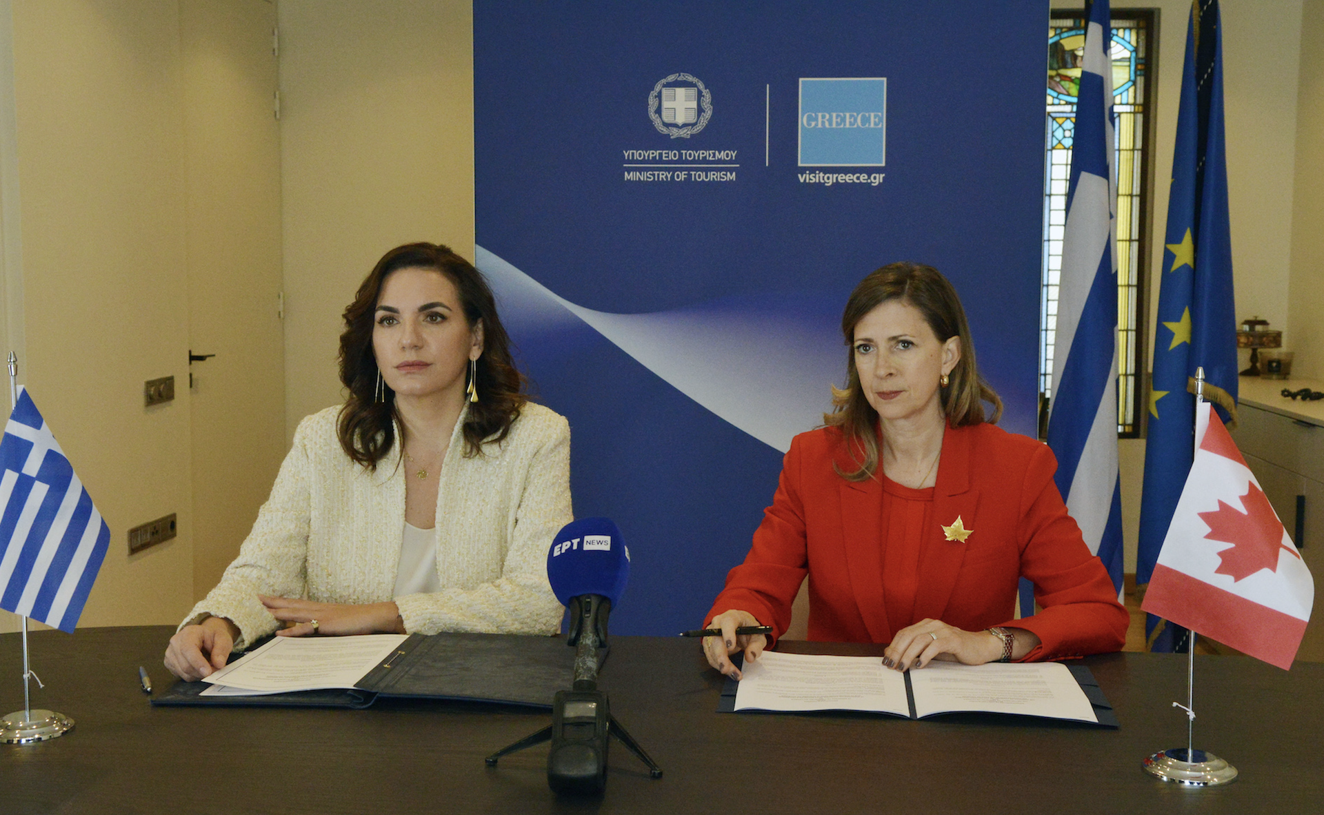 Υπεγράφη σήμερα μνημόνιο κατανόησης για τη συνεργασία στον τομέα του τουρισμού από την υπουργό Τουρισμού, Ολγα Κεφαλογιάννη, και την πρέσβειρα του Καναδά στην Ελλάδα, Anna-Karine Asselin.