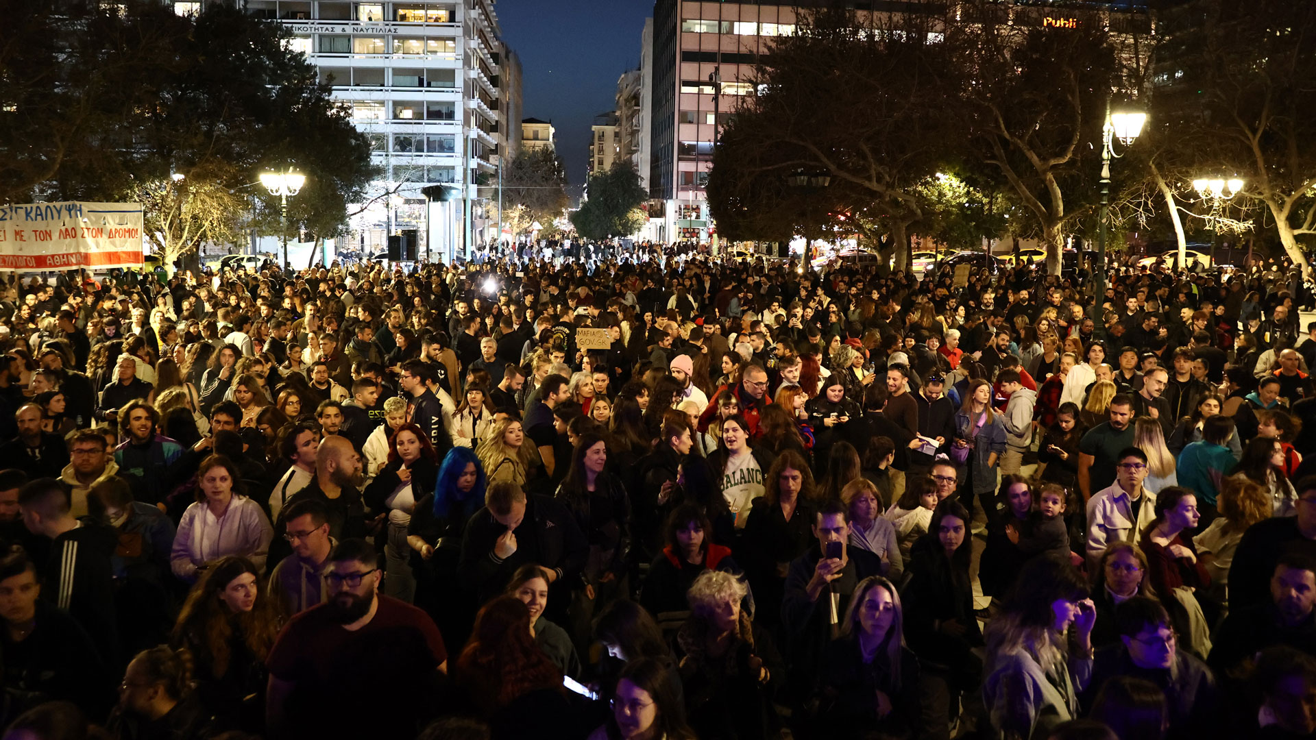 Πλήθος κόσμου δίνει το «παρών» στην πλατεία Συντάγματος, όπου σε εξέλιξη βρίσκεται συναυλία για την υπόθεση των Τεμπών.