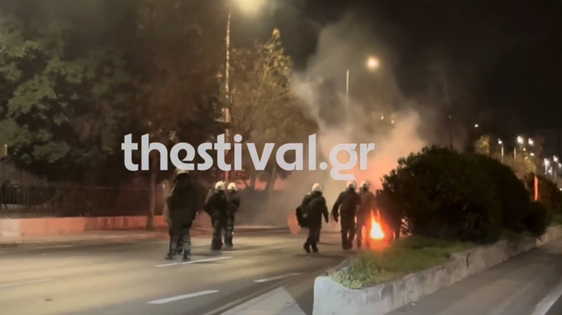Επεισόδια σημειώθηκαν τα ξημερώματα στη Θεσσαλονίκη όταν ομάδα κουκουλοφόρων επιτέθηκε σε αστυνομικές δυνάμεις στην οδό Εγνατία, στο Συντριβάνι.