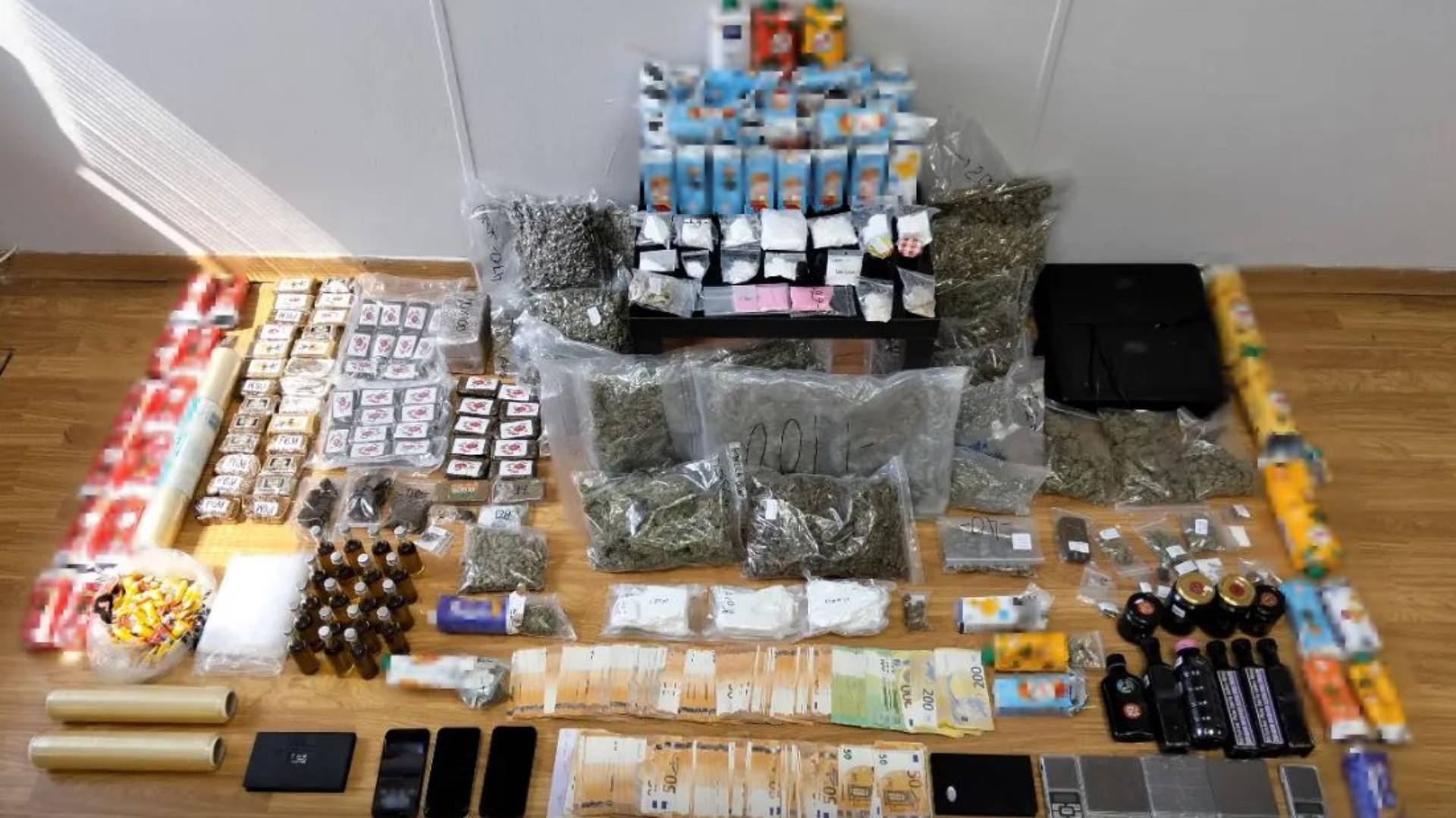 Χαρακτηριστικό της επαγγελματικής υποδομής της οργάνωσης αποτελεί η μεγάλη ποικιλία των ναρκωτικών ουσιών που διακινούσαν, καθώς κατά τις έρευνες βρέθηκαν έντεκα είδη-μορφές ναρκωτικών και συγκεκριμένα κοκαΐνη, ροζ κοκαΐνη «TUSI», κατεργασμένη (σοκολάτα) και ακατέργαστη κάνναβη (SKUNK), κεταμίνη, κρυσταλλική μεθαμφεταμίνη (MDMA), LSD σε υγρή μορφή, παραισθησιογόνα μανιτάρια, χασισέλαιο, κωδεΐνη και έλαιο κάνναβης.