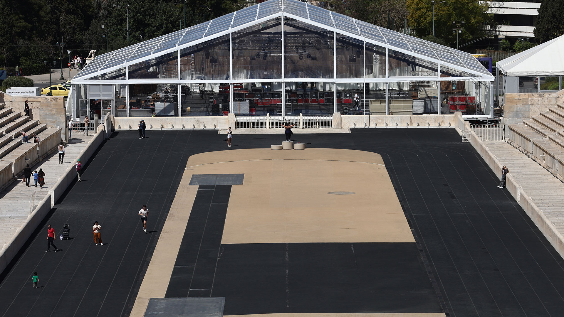 Υπενθυμίζεται ότι αυτοψία στο Καλλιμάρμαρο πραγματοποίησε το πρωί της Παρασκευής η υπουργός Πολιτισμού, Λίνα Μενδώνη, στην κατασκευή που στήθηκε στον χώρο έμπροσθεν του Παναθηναϊκού Σταδίου.