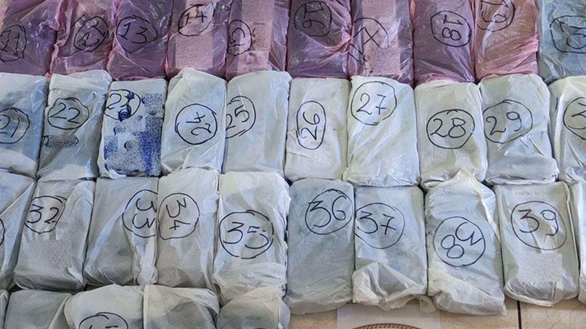Ειδικότερα, κατασχέθηκαν σαράντα πέντε πλαστικές συσκευασίες περιέχουσες ποσότητα κοκαΐνης συνολικού μεικτού βάρους 53 κιλών και 778 γραμμαρίων, για τη συνολική αξία των οποίων προβλέπονται από την κείμενη νομοθεσία ποινές κακουργηματικού χαρακτήρα.