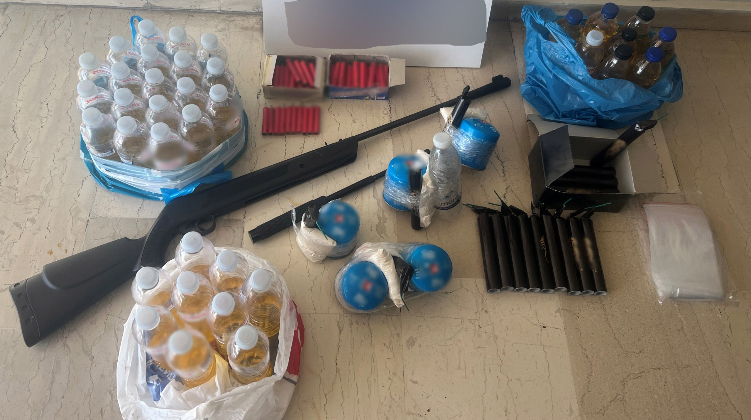 Επίσης, στο πλαίσιο επιχείρησης από αστυνομικούς του τμήματος Δίωξης και Εξιχνίασης Εγκλημάτων Κορίνθου, σε συνεργασία με αστυνομικούς του τμήματος Κορίνθου και της Ομάδας Πρόληψης και Καταστολής Εγκλήματος Δυτικής Ελλάδας, πραγματοποιήθηκαν έρευνες στα σπίτια των συλληφθέντων, όπου, μεταξύ άλλων, βρέθηκαν, τέσσερις εμπρηστικοί – εκρηκτικοί μηχανισμοί, ένα αεροβόλο όπλο, μία πτυσσόμενη μεταλλική ράβδος, 13 αυτοσχέδιες κροτίδες με φυτίλι, 79 κροτίδες, 36 μπουκάλια που περιείχαν εύφλεκτη ουσία, δύο συσκευασίες, που περιείχαν ποσότητα άγνωστης ουσίας, προφανώς εκρηκτικής ύλης κ.α.