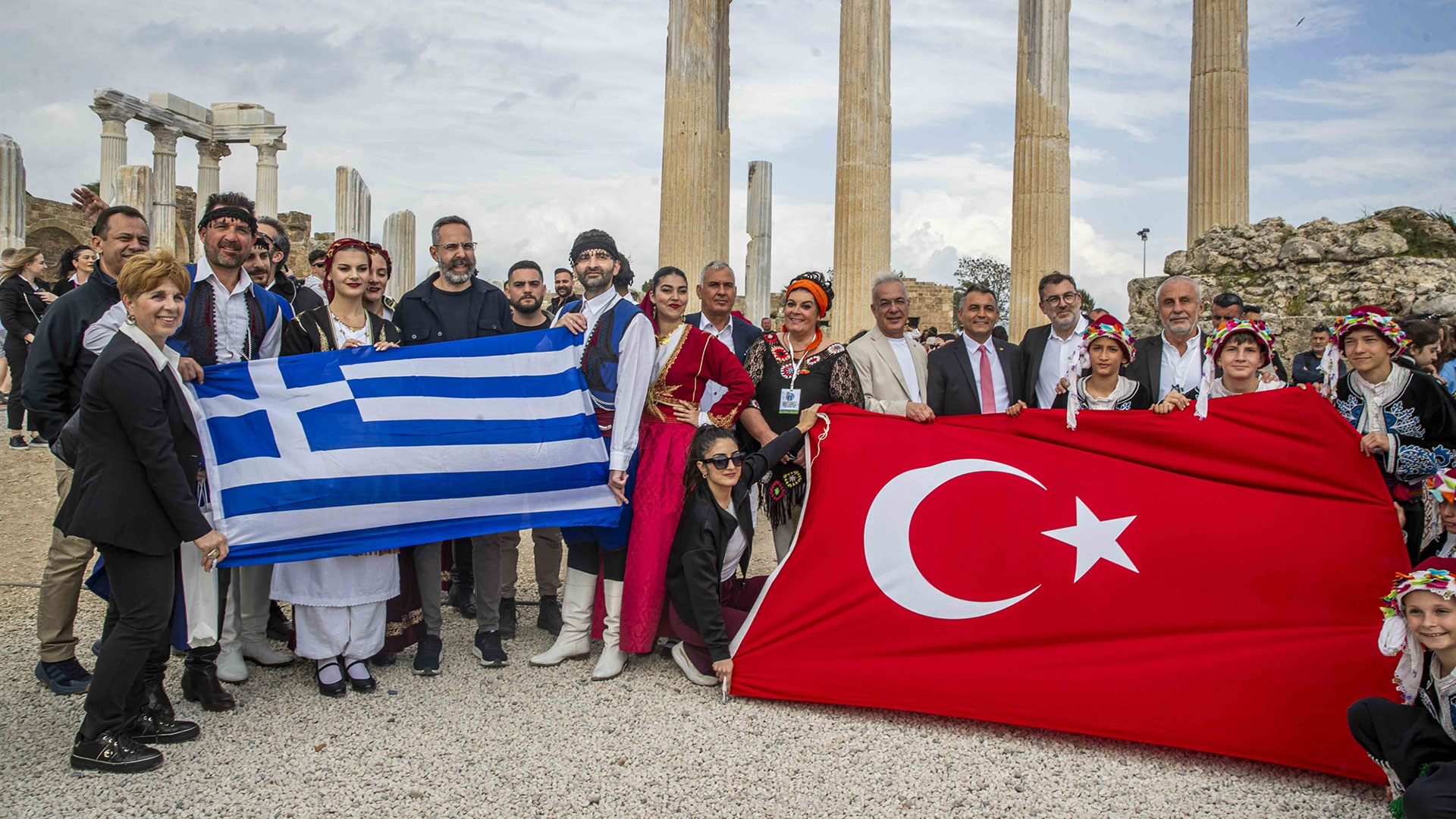 Ο κεντρικός δρόμος της Σίδης μοιάζει με πολύχρωμο ποτάμι. Ανθρωποι κάθε ηλικίας κατεβαίνουν προς το λιμάνι και τον Ναό του Απόλλωνα για την εναρκτήρια εκδήλωση του φεστιβάλ. Προηγείται η φιλαρμονική του δήμου παίζοντας το «Senden Baska», δηλαδή το «Μίλησέ μου» του Μάνου Χατζιδάκι και του Νίκου Γκάτσου, το οποίο μια τραγουδίστρια ερμηνεύει στα τουρκικά. Ακολουθεί μια ομάδα νέων με παραδοσιακές τουρκικές φορεσιές και αμέσως μετά οι εκπρόσωποι του Χορευτικού Ομίλου Χανίων «Ο Ψηλορείτης» κρατώντας την ελληνική σημαία. Πίσω τους, πλήθος κόσμου: τραγουδούν, χορεύουν, χειροκροτούν. Εκθαμβοι τουρίστες (η Μαναβγκάτ, δημοφιλής για τις αμμώδεις παραλίες της συνολικού μήκους 65 χιλιομέτρων, κάθε χρόνο υποδέχεται πάνω από επτά εκατομμύρια τουρίστες) παρακολουθούν, φωτογραφίζουν, μαγνητοσκοπούν με τα κινητά τους.