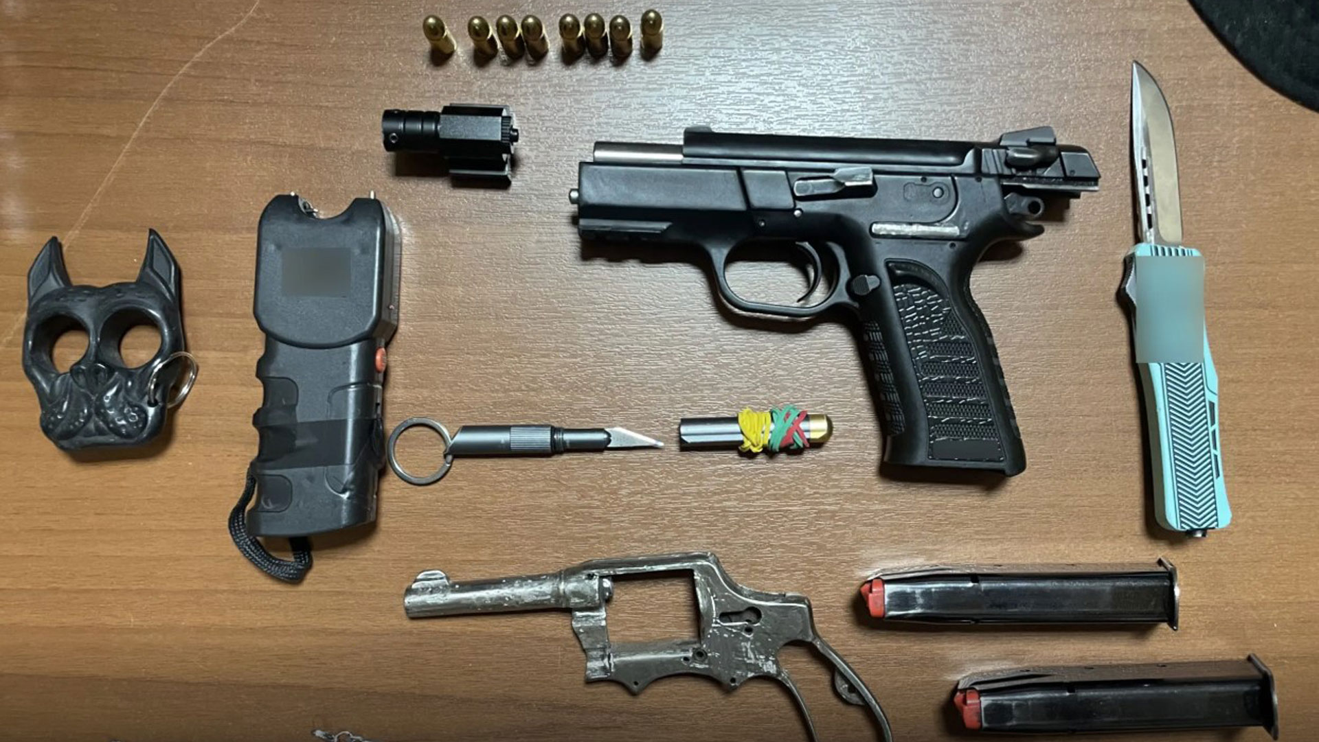 Εκτός από τον 26χρονο, συνελήφθησαν επίσης ένας 64χρονος και μία 23χρονη, κατηγορούμενοι για παράβαση της νομοθεσίας περί όπλων και εξαρτησιογόνων ουσιών.
