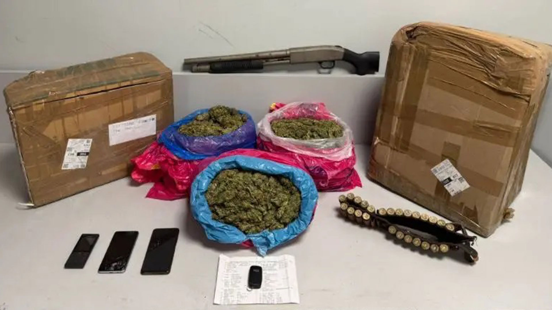 Από τις έρευνες που ακολούθησαν, βρέθηκαν επίσης και κατασχέθηκαν μια καραμπίνα, 25 φυσίγγια, τρία κινητά και όχημα.