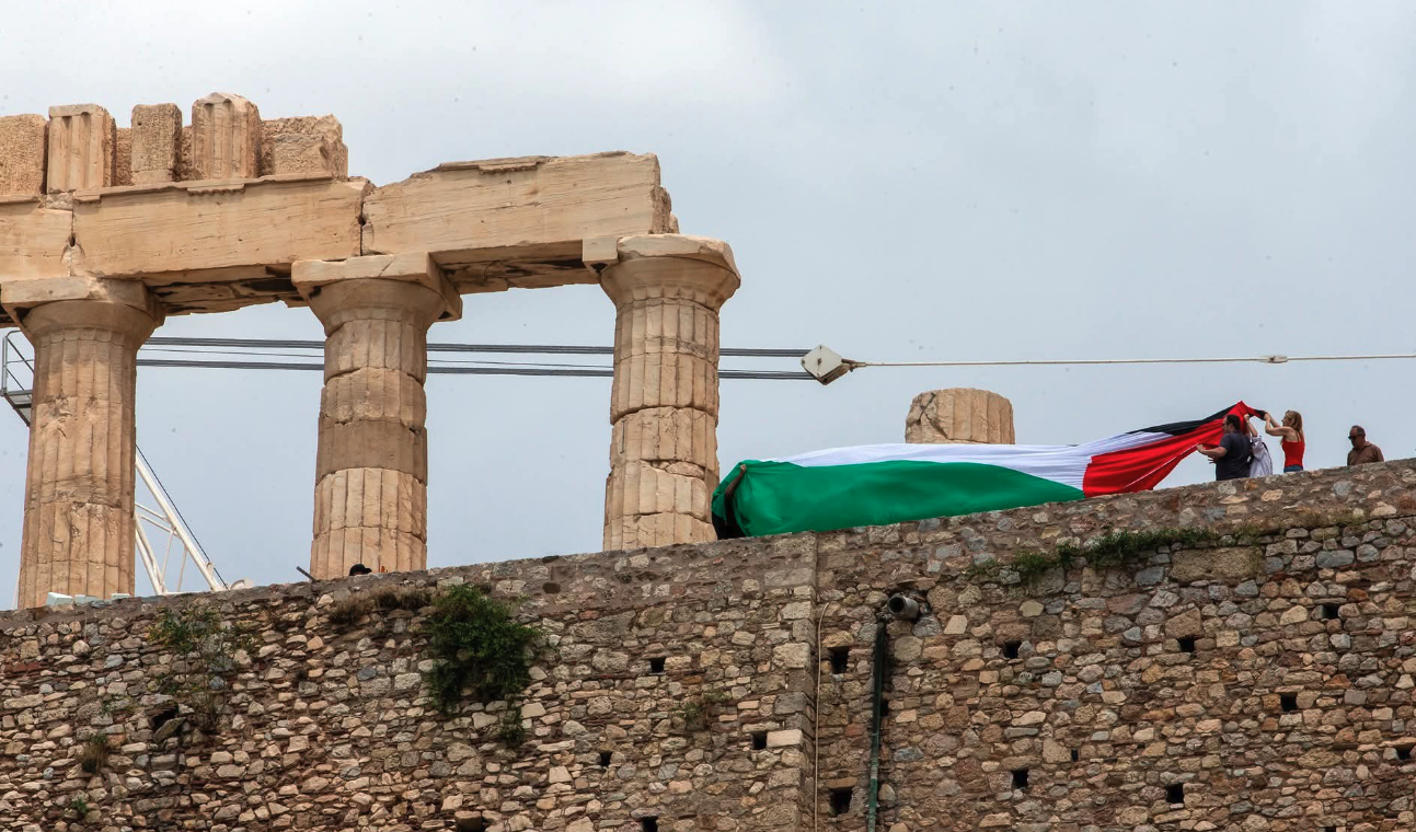 «Το πρωί της Τετάρτης μέλη της Νέας Αριστεράς και της Νεολαίας του κόμματος πραγματοποίησαν ακτιβισμό στην Ακρόπολη υψώνοντας τη σημαία της Παλαιστίνης. Οι αστυνομικές δυνάμεις επιδεικνύοντας ιδιαίτερο ζήλο, προχώρησαν σε προσαγωγή 15 ατόμων, μεταξύ των οποίων ο γραμματέας του Κ.Σ. της Νεολαίας της Νέας Αριστεράς. Η αλληλεγγύη, το αίτημα να σταματήσει ο πόλεμος δεν είναι εγκληματικές πράξεις. Είναι δικαίωμα και υποχρέωση όλων των πολιτών να διαδηλώσουν για την ειρήνη. Η Παλαιστίνη πρέπει να ζήσει, οι Παλαιστίνιοι δεν είναι μόνοι».