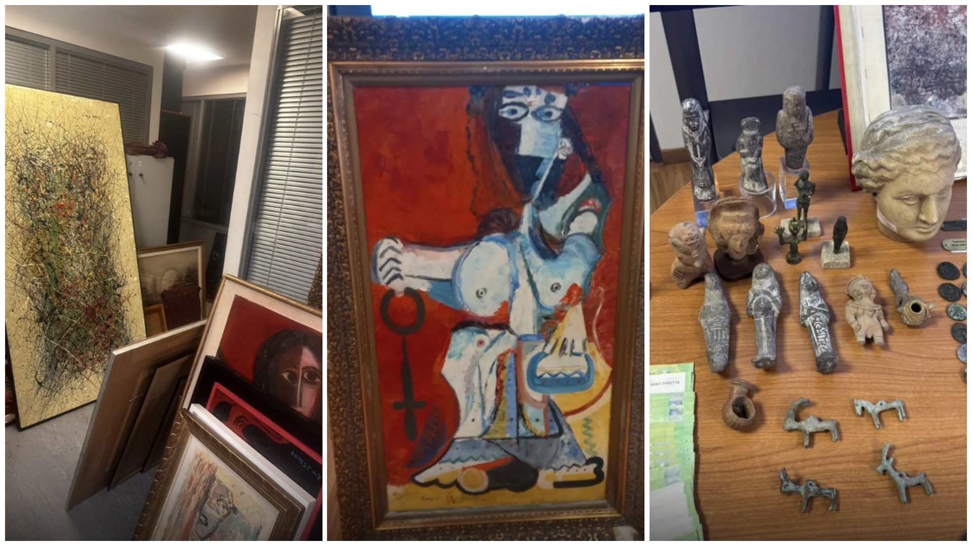 Για την υπόθεση έχουν συλληφθεί 13 άτομα, μεταξύ αυτών και ένας ζωγράφος, που είχε συλληφθεί ξανά το 2023 για αντίστοιχη υπόθεση με πλαστά έργα τέχνης.