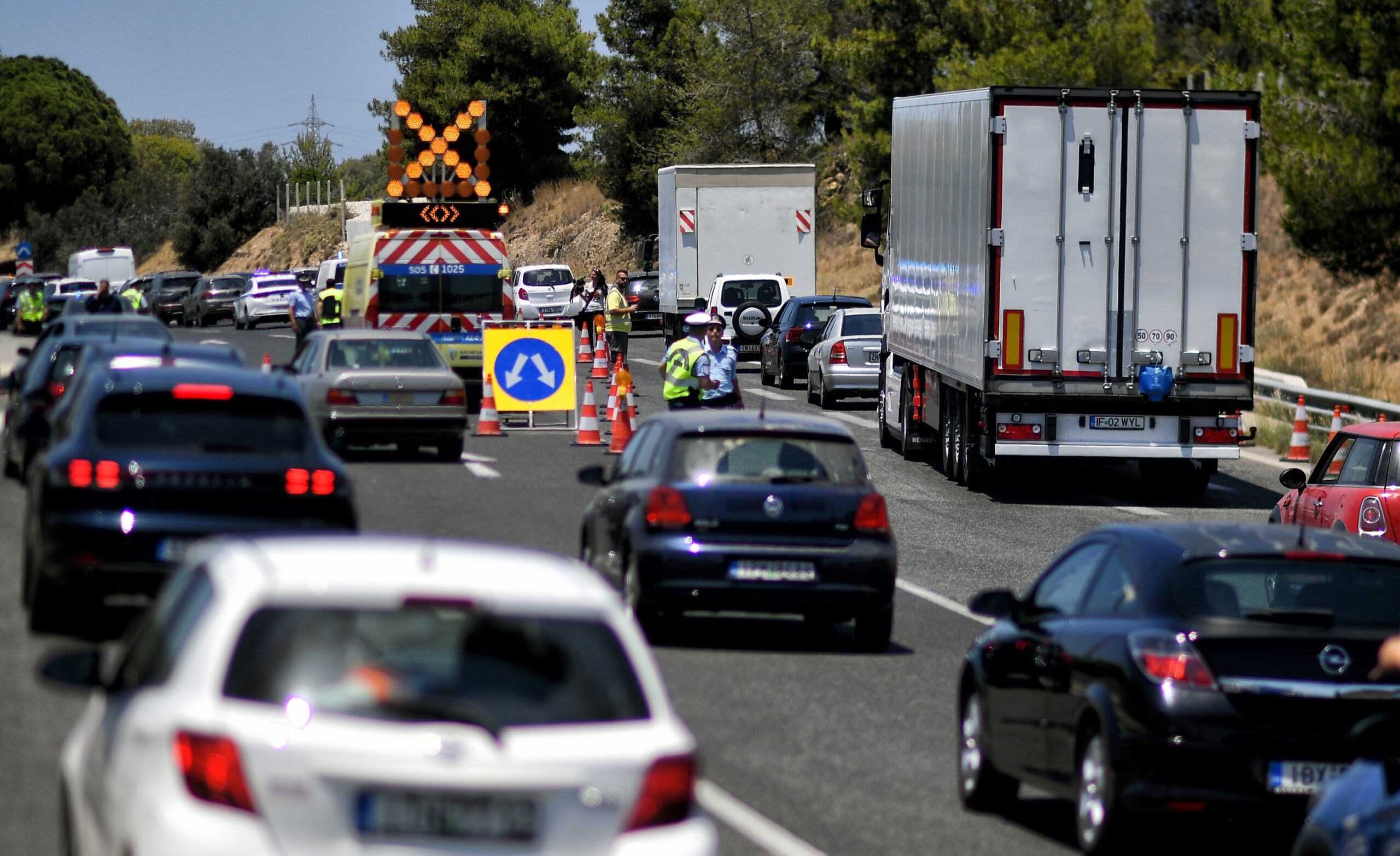 Λόγω του ατυχήματος, συμφόρηση επικρατεί στην περιοχή, με τα οχήματα να σχηματίζουν ουρές χιλιομέτρων.