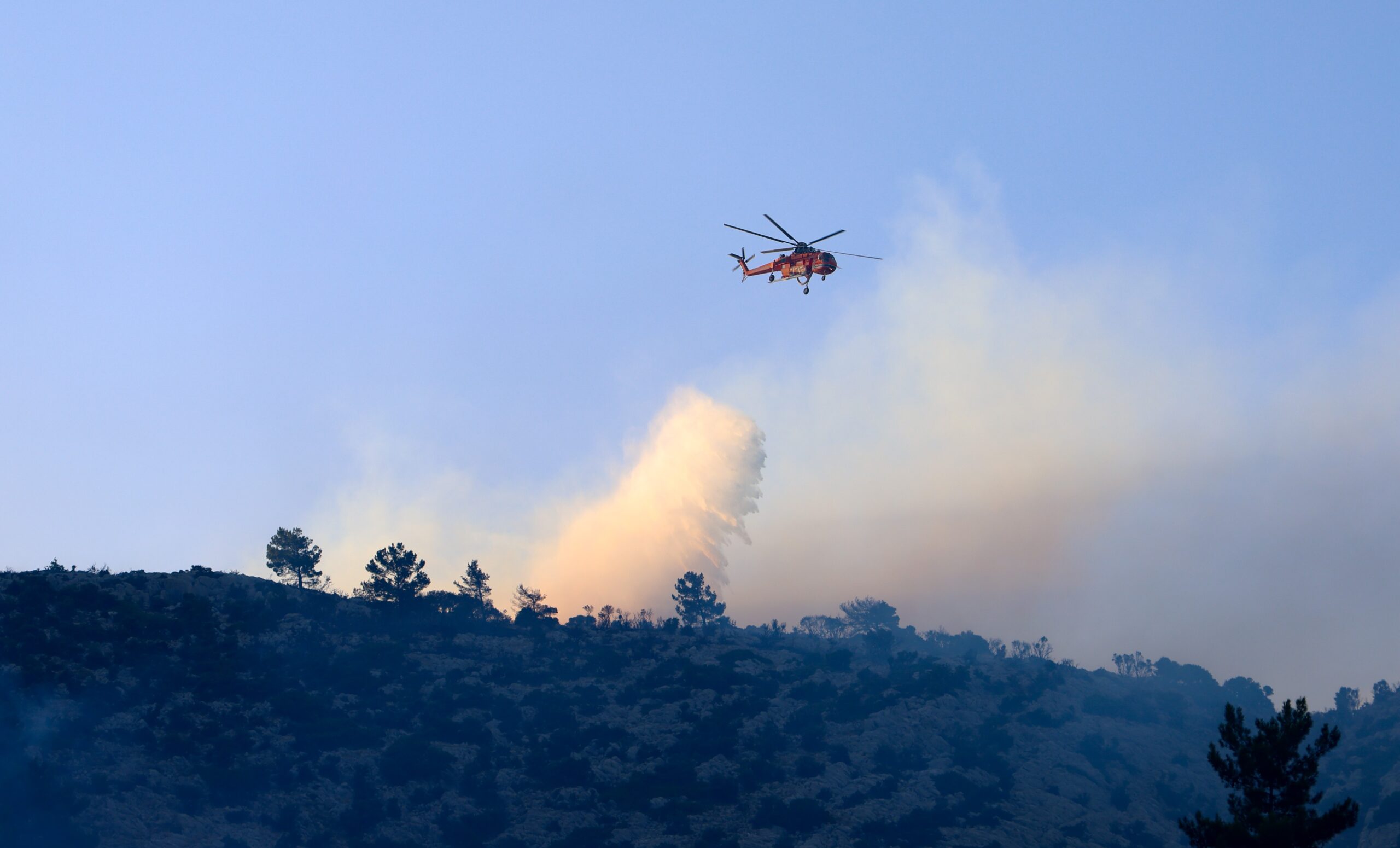 Επιπλέον, ένα ελικόπτερο επιχειρεί στη θέση Παναγία Αρβανίτισσα, που έχει μια αναζωπύρωση, δυτικά του χωριού Καρυές.