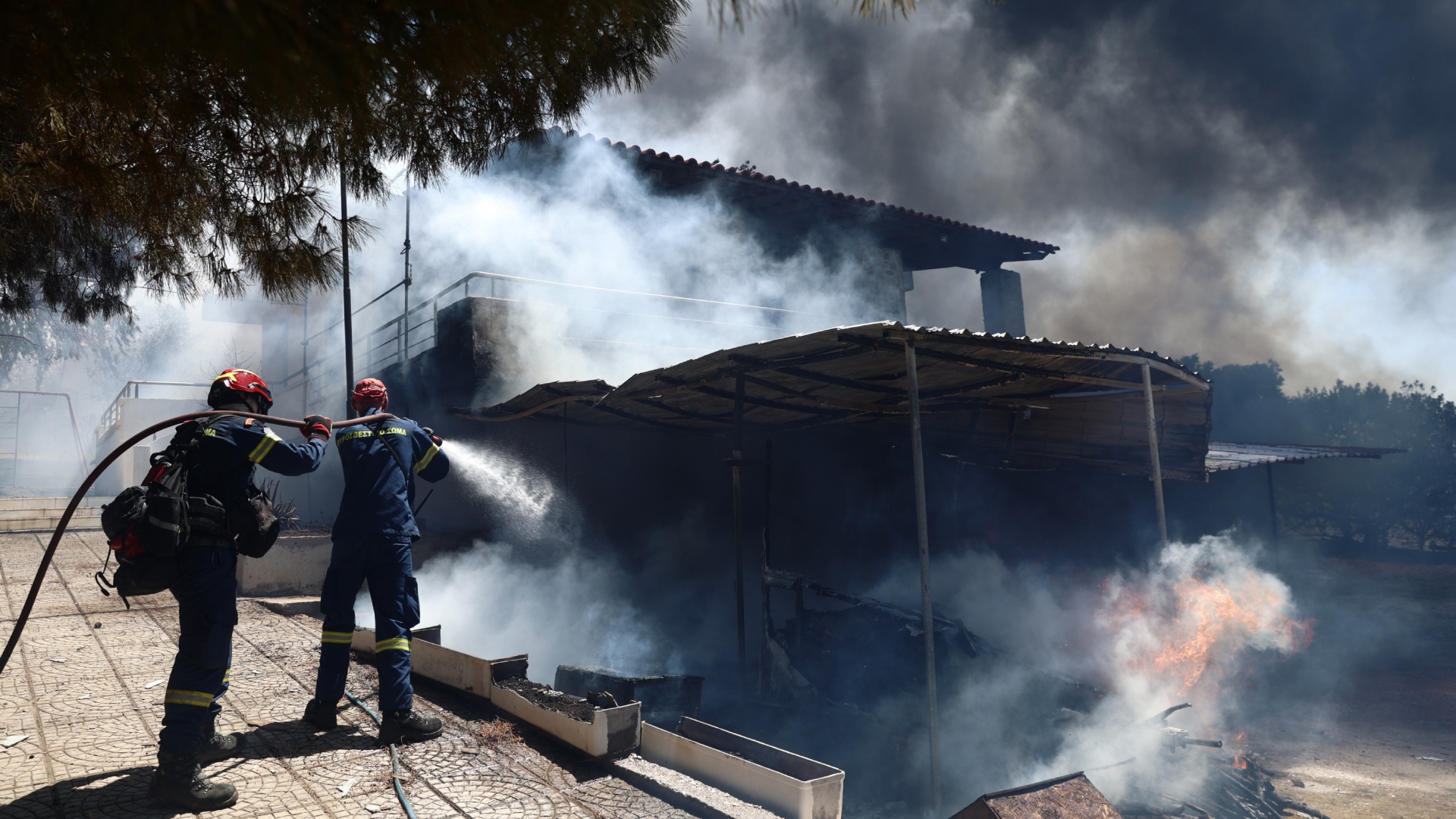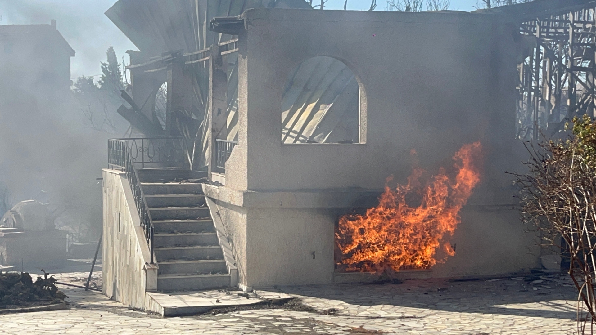 - 15:25Στις αυλές σπιτιών οι φλόγες
