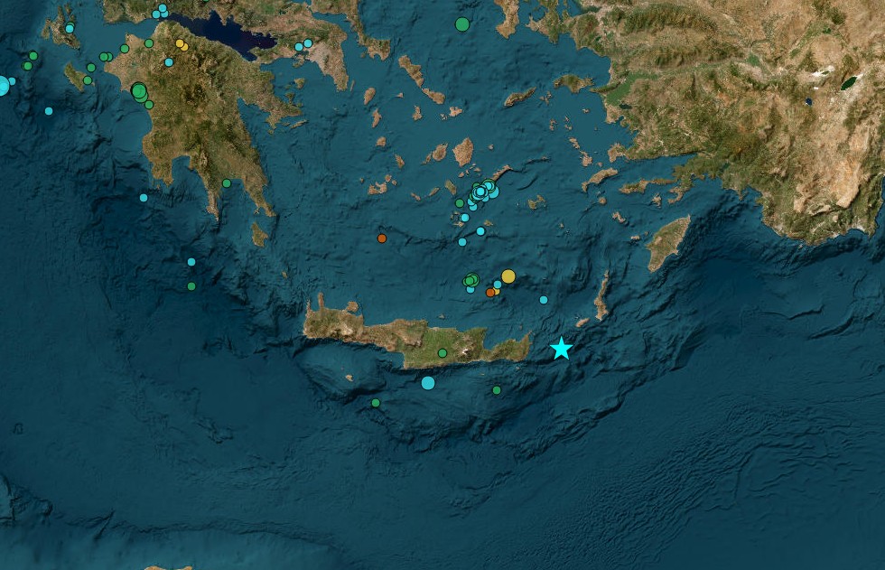 Σεισμική δόνηση μεγέθους 5 βαθμών της κλίμακας Ρίχτερ καταγράφηκε στις 20:46 (ώρα Ελλάδας) της Δευτέρας σε θαλάσσια περιοχή ανατολικά της Κρήτης.