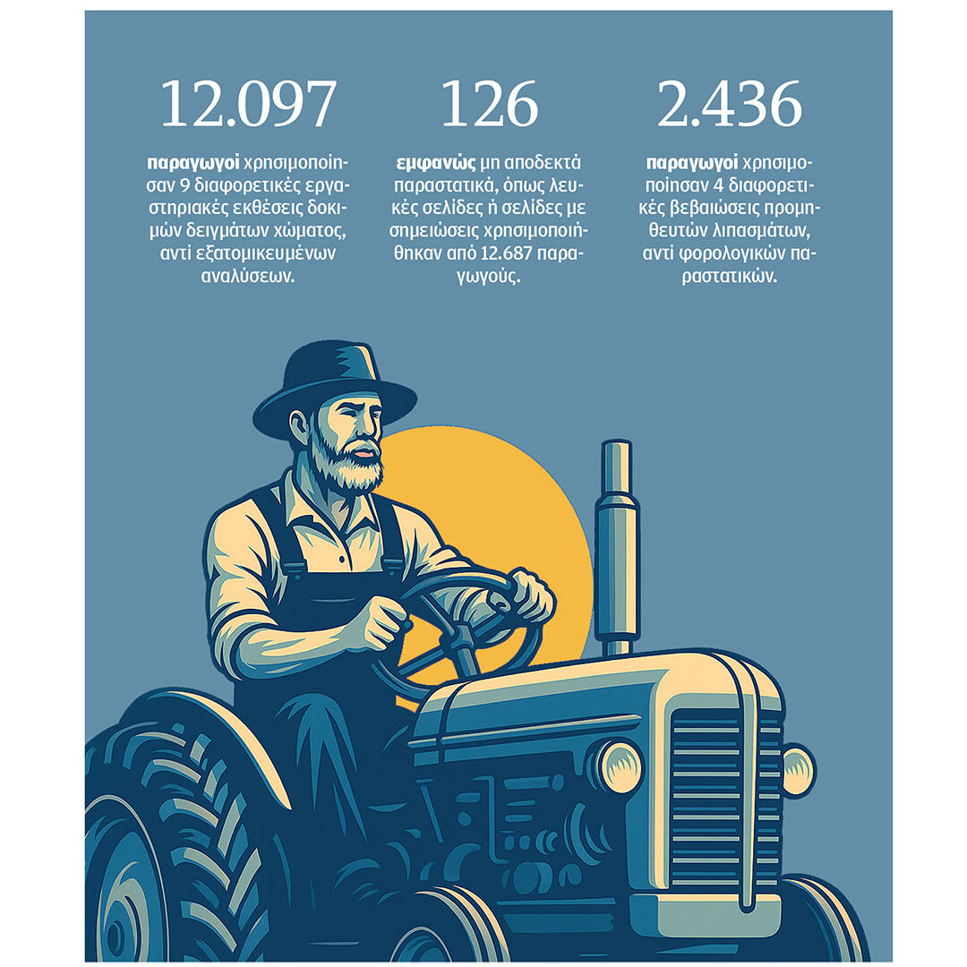 Το εύρος του «πάρτι» με τις παράνομες αγροτικές επιδοτήσεις αναδεικνύεται από νέο φάκελο με 30.226 κόκκινους ΑΦΜ μέσω των οποίων είχαν υποβληθεί αιτήσεις για ενίσχυση από το Ευρωπαϊκό Πρόγραμμα «Οικολογικά Σχήματα» που εντάσσεται στη Νέα Αγροτική Πολιτική. Τις αιτήσεις συνόδευαν εμφανώς παραποιημένα δικαιολογητικά, όπως σβησμένα στοιχεία, πρόχειρες σημειώσεις, ακόμη και… λευκές σελίδες, αντί των απαιτούμενων φορολογικών παραστατικών.