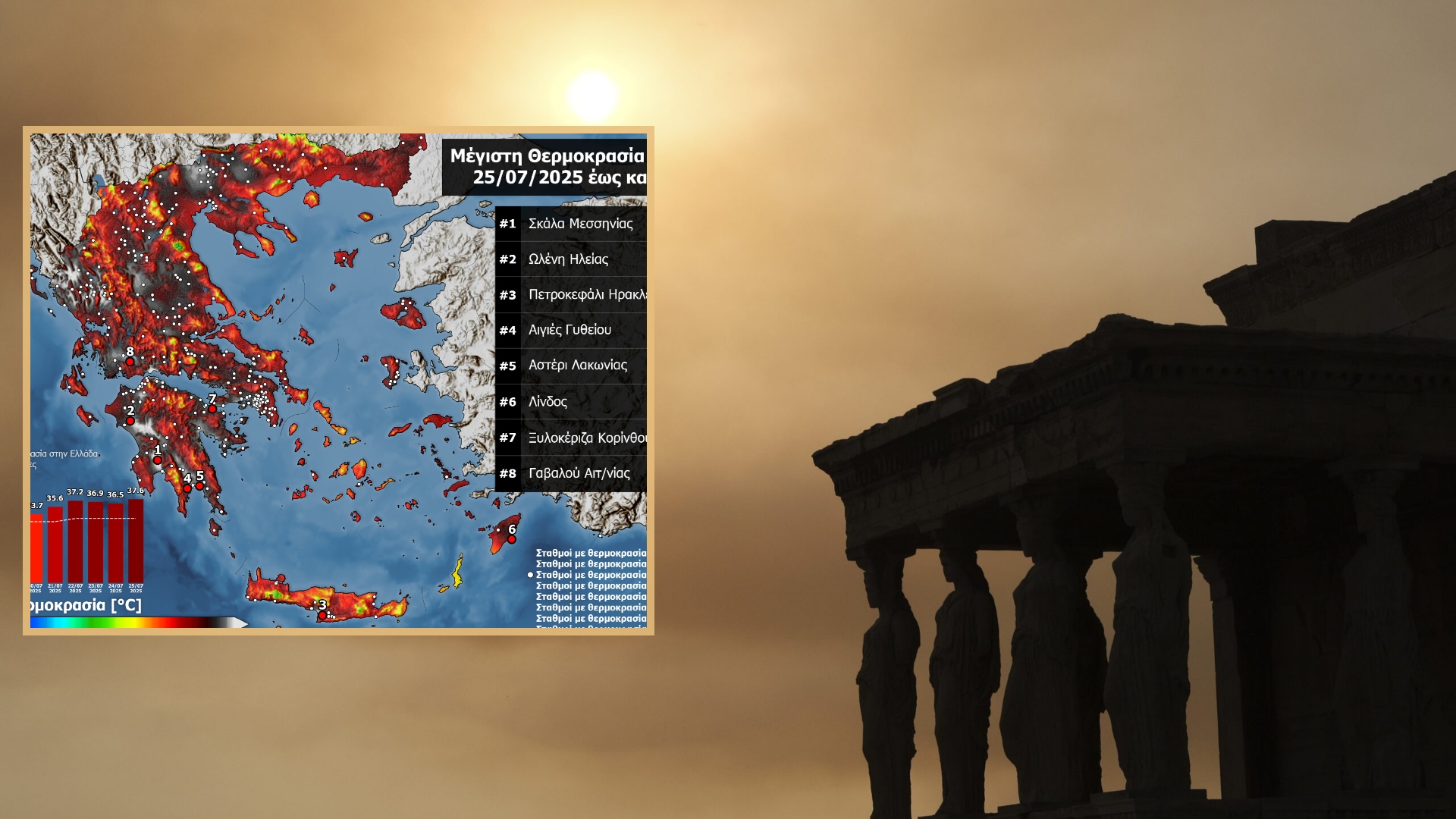 Η μέγιστη θερμοκρασία σημειώθηκε στη Σκάλα Μεσσηνίας φθάνοντας τους 45,8°C.