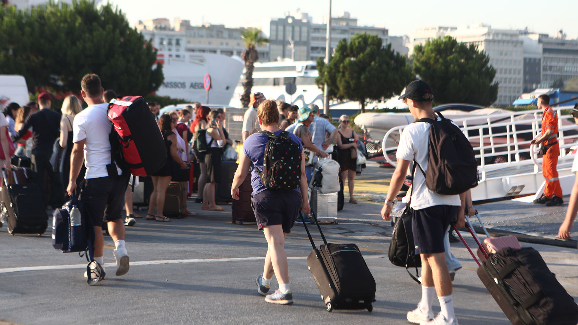 Εν μέσω καύσωνα, χιλιάδες εκδρομείς αναχώρησαν σήμερα από τα λιμάνια της χώρας για τα νησιά του Αιγαίου.