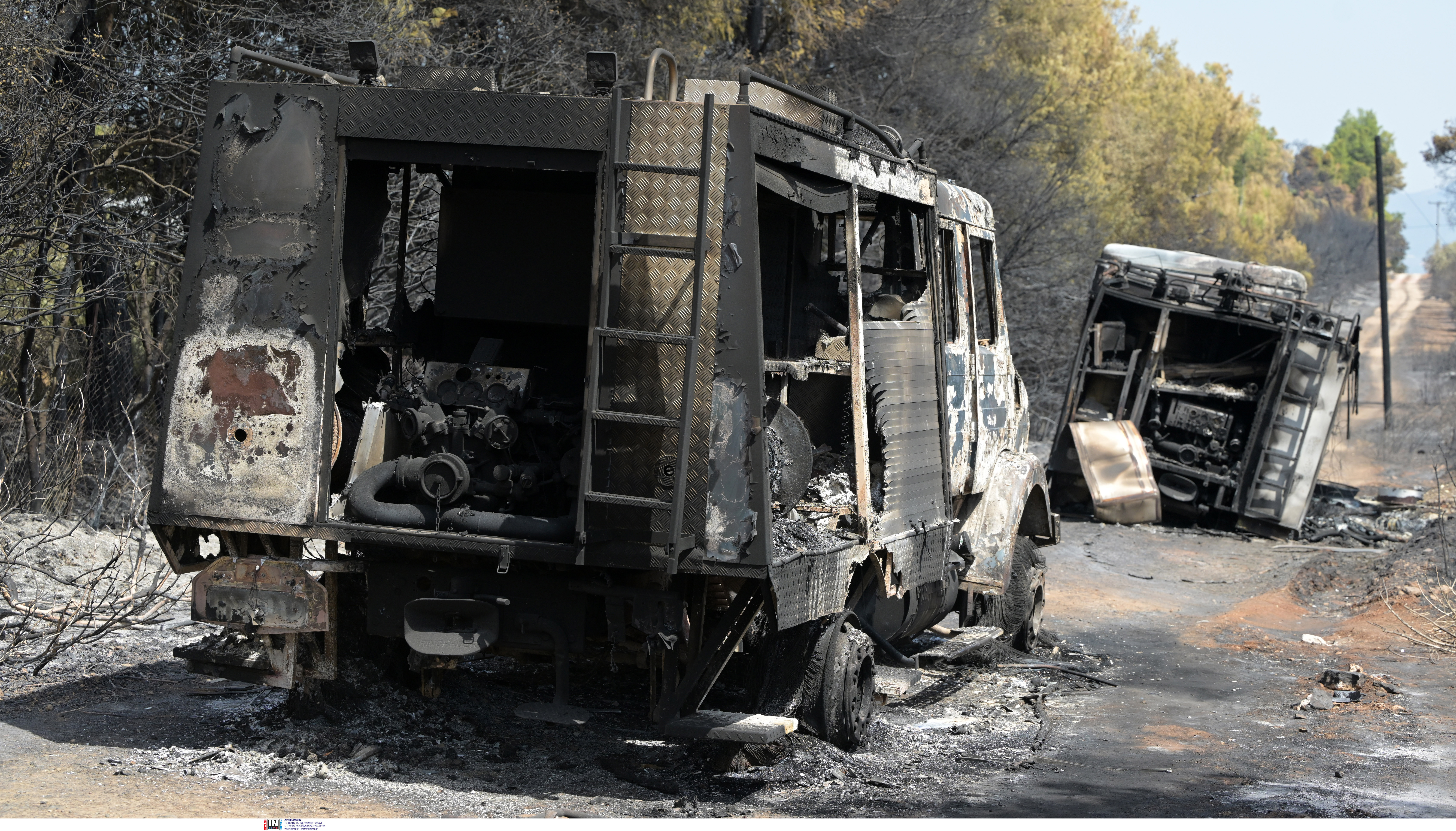 - 18:43Καμμένα πυροσβεστικά οχήματα στην Εύβοια