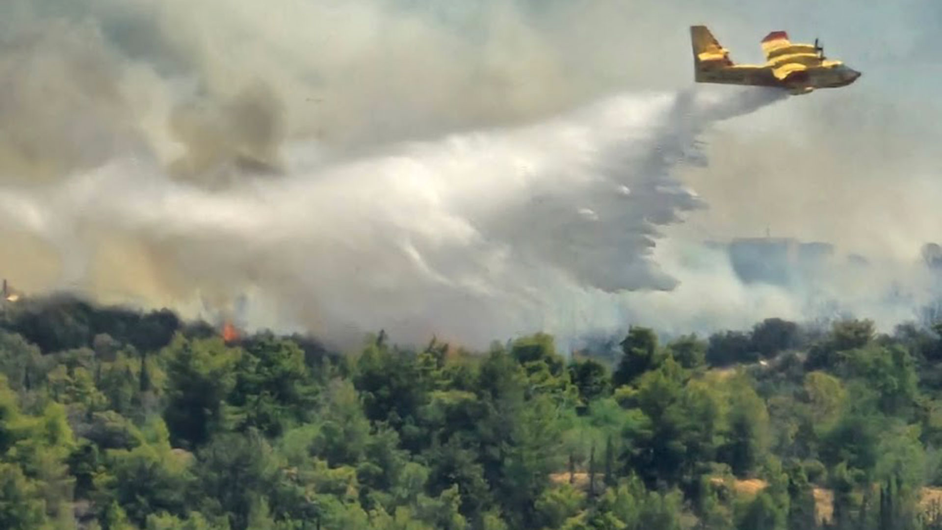 Η πυρκαγιά, που πλέον είναι σε ύφεση, ξέσπασε σε χαμηλή βλάστηση στους πρόποδες του Υμηττού.