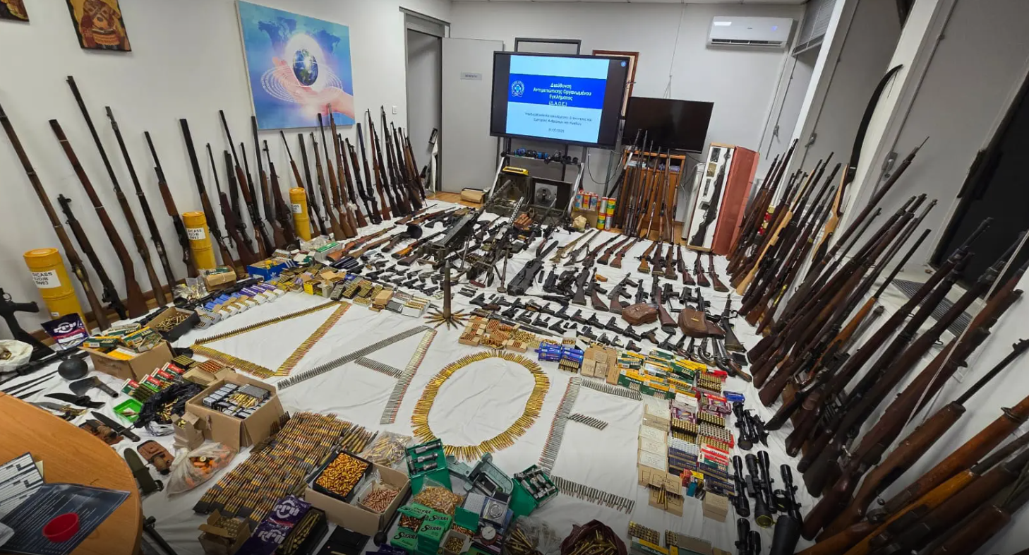 - πλήθος ουσιωδών και λοιπών εξαρτημάτων (156 κάννες, 45 λαβές, 350 γεμιστήρες, 110 χειροφυλακτήρες κ.ά.),
