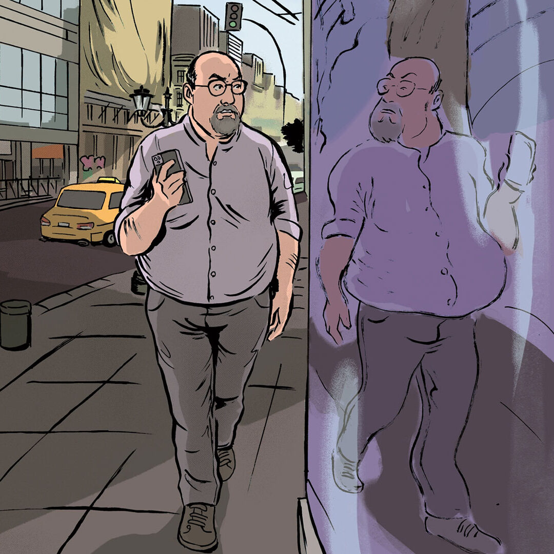 Θυμάμαι έντονα τη μέρα που για πρώτη φορά ξαφνιάστηκα από τη φιγούρα μου: περπατούσα βιαστικός διαβάζοντας ένα μήνυμα στο κινητό μου, όταν με την άκρη του ματιού μου είδα κάποιον να περπατάει στο πλάι μου με την ίδια ακριβώς ταχύτητα. Γύρισα το κεφάλι μου ενστικτωδώς, διεκδικώντας λίγη απόσταση, και ανακάλυψα πως συμβάδιζα μόνο με την αντανάκλασή μου, που με κοιτούσε εξίσου έκπληκτη από την τζαμαρία ενός κλειστού μαγαζιού στην Ομόνοια.