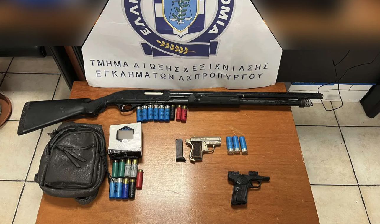 Στις έρευνες που έγιναν στα σπίτια τους, εντοπίστηκαν «επιμελώς κρυμμένα σε κρύπτες», πιστόλι με γεμιστήρα, πιστόλι ρέπλικα, καραμπίνα και δέκα φυσίγγια, σύμφωνα με ανακοίνωση της ΕΛ.ΑΣ.