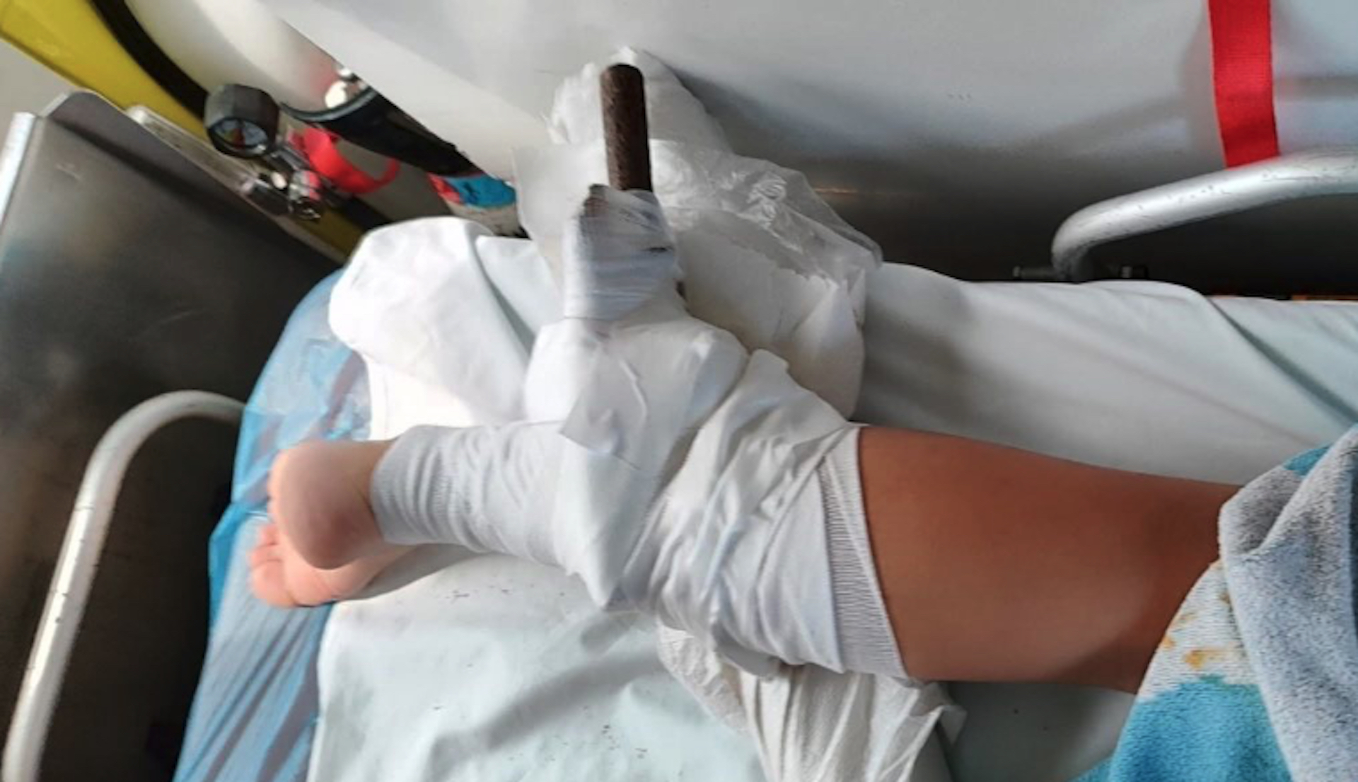 «Εγινε ακινητοποίηση και επίδεση του μέλους για τον έλεγχο της αιμορραγίας χωρίς την αφαίρεση του ξένου σώματος, όπως αναφέρουν τα πρωτόκολλα, και διακομίστηκε στο νοσοκομείο Πολυγύρου για την αφαίρεση του ξένου σώματος και την οριστική αποκατάσταση».
