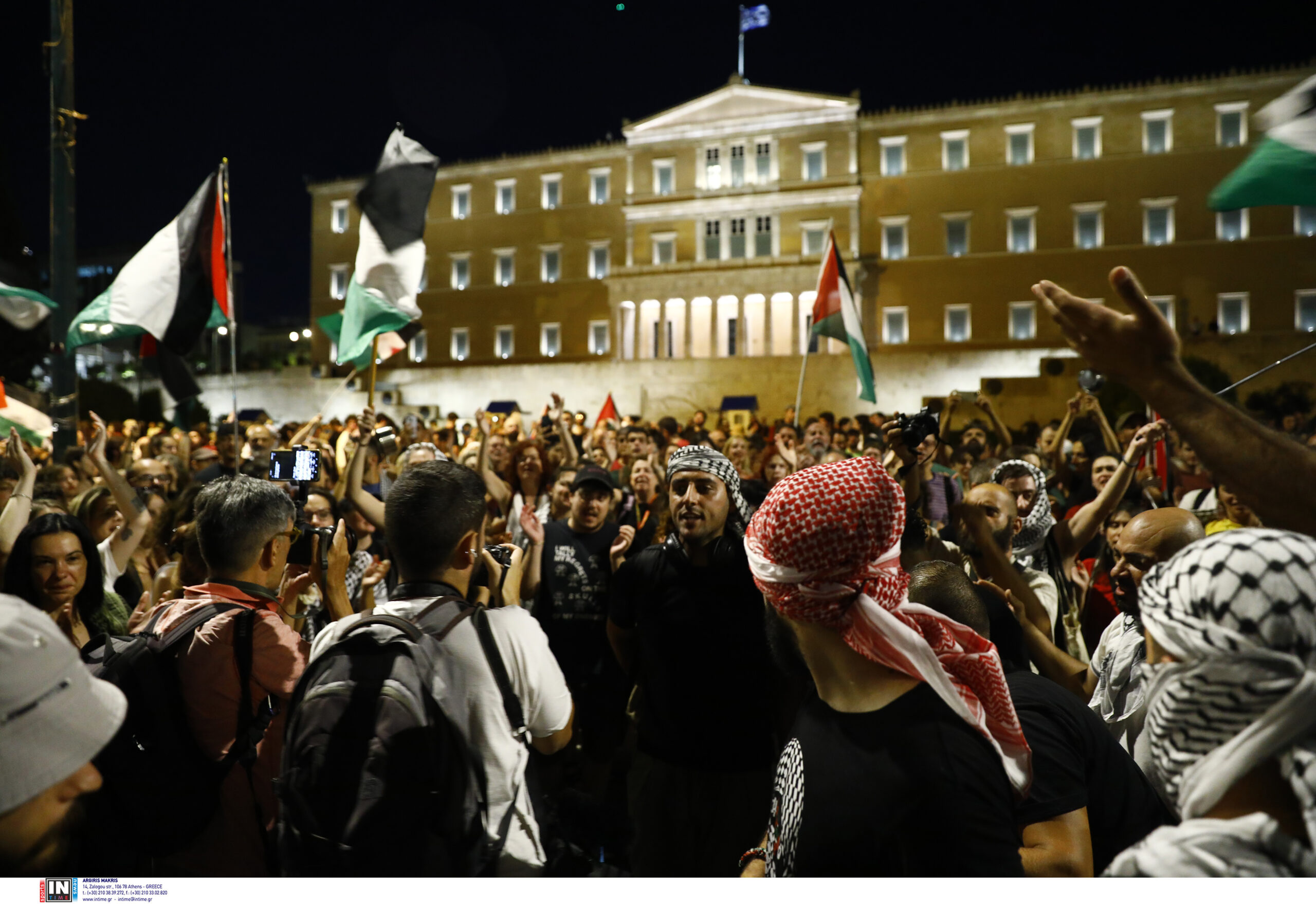 Πλήθος κόσμου συγκεντρώθηκε το απόγευμα της Κυριακής στο Σύνταγμα, ζητώντας τον άμεσο τερματισμό των πολεμικών επιχειρήσεων στη Γάζα. Βασικό σύνθημα της πορείας, «Λευτεριά στην Παλαιστίνη».