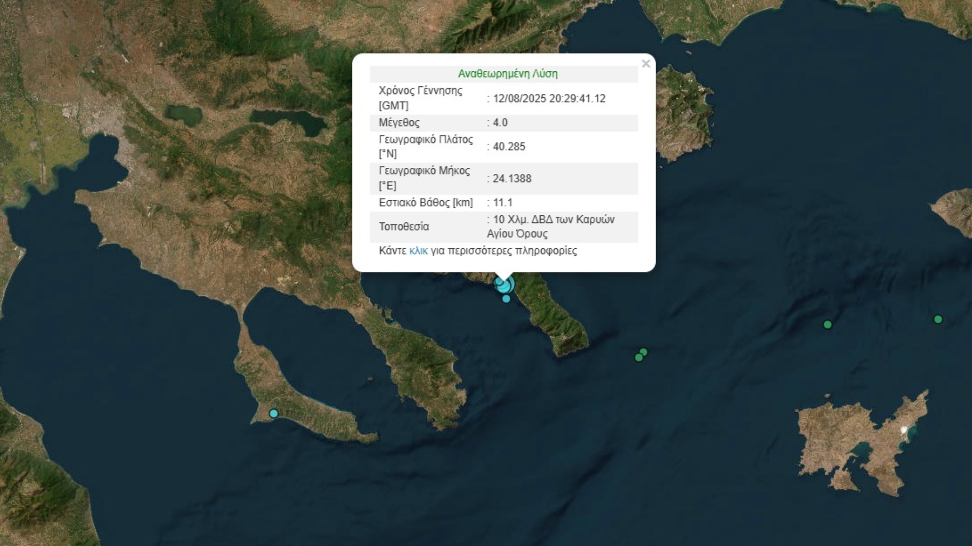 Σεισμική δόνηση 4 βαθμών της κλίμακας Ρίχτερ σημειώθηκε το βράδυ της Τρίτης στις Καρυές του Αγίου Ορους.