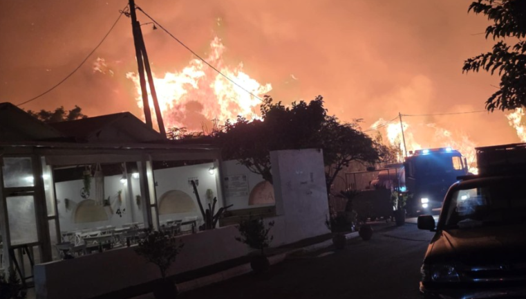 Στο νησί κάηκαν κτίρια, κτηνοτροφικές μονάδες και αυτοκίνητα, ενώ νωρίτερα το Λιμενικό, σε συνεργασία με ιδιωτικά σκάφη, προέβη σε απεγκλωβισμούς πολιτών.