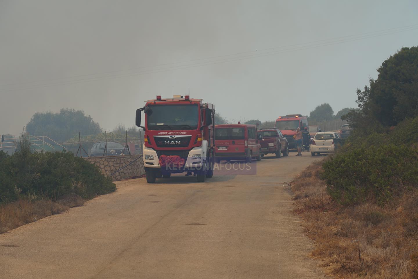 - Επιχειρούν 32 πυροσβέστες, 2 πεζοπόρα, 8 οχήματα, εθελοντές, υδροφόρες δήμου, 2 αεροσκάφη.