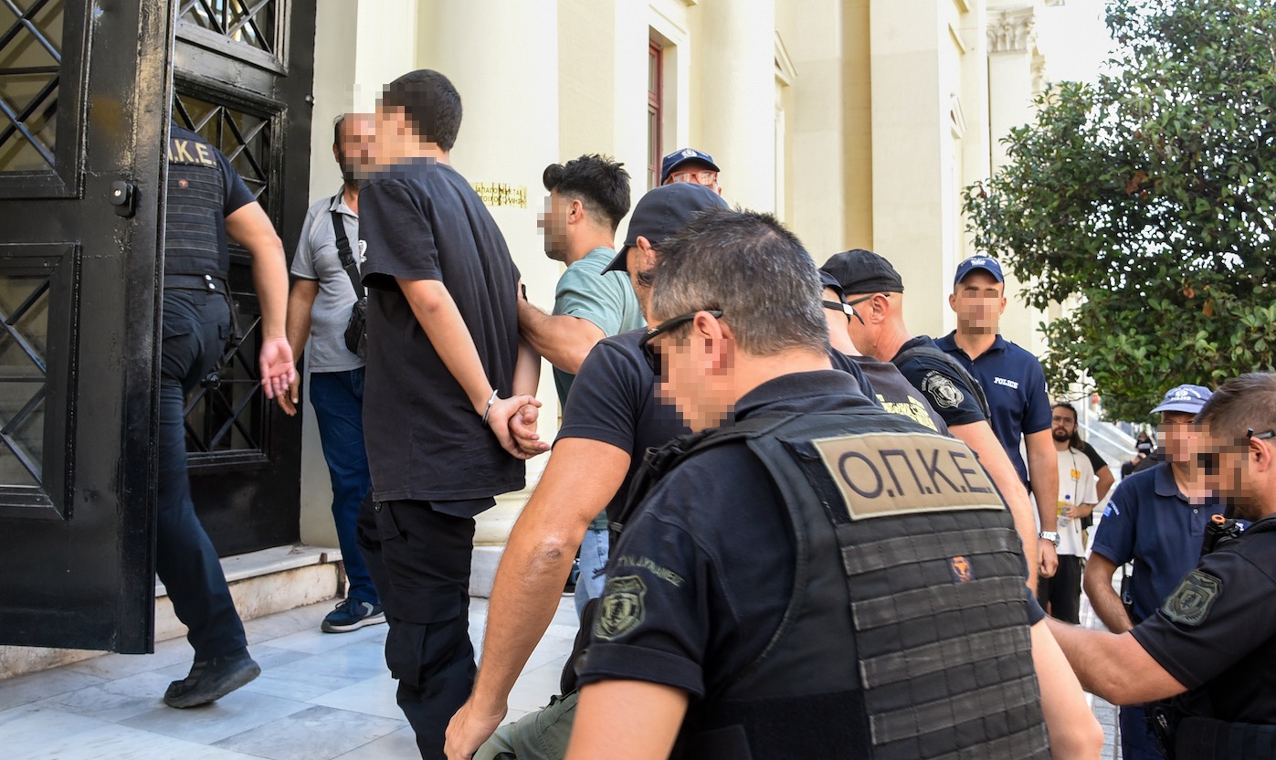 Σύμφωνα με την ΕΡΤ, σχεδόν δύο ώρες μετά την άφιξη των δύο πρώτων κατηγορουμένων, στα δικαστήρια οδηγήθηκε λίγο πριν από τις 7 το απόγευμα και ο τρίτος, προκειμένου να παρουσιαστεί ενώπιον της εισαγγελικής αρχής για να του ασκηθεί δίωξη.