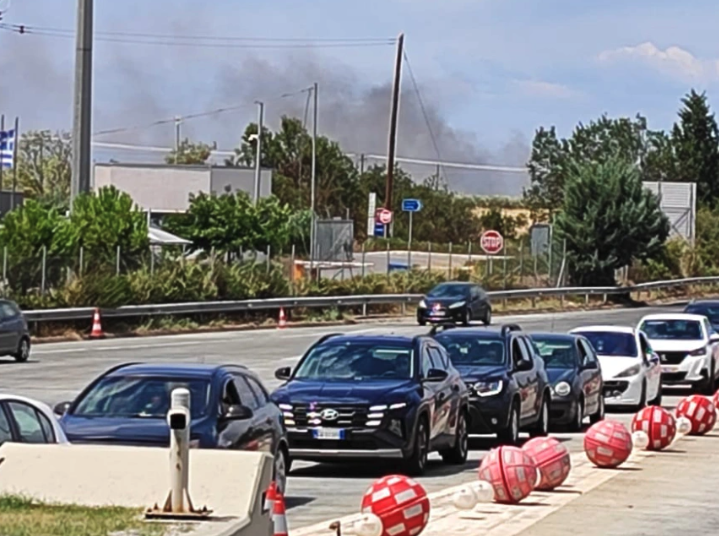 Λόγω της φωτιάς, έχει διακοπεί η κυκλοφορία στο ρεύμα ανόδου προς Θεσσαλονίκη, στο ύψος των διοδίων Μοσχοχωρίου, με αποτέλεσμα να σχηματιστεί μεγάλη ουρά ακινητοποιημένων οχημάτων.