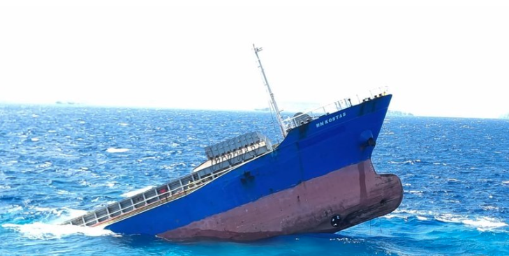 Το φορτηγό πλοίο «MN KOSTAS» σημαίας Σιέρα Λεόνε, που πριν από περίπου έναν μήνα είχε προσαράξει στη θαλάσσια περιοχή Κυριαμάδι Σητείας, έχει βυθιστεί σε μεγάλο βαθμό, με μόνο την πλώρη του να εξέχει πλέον από το νερό.