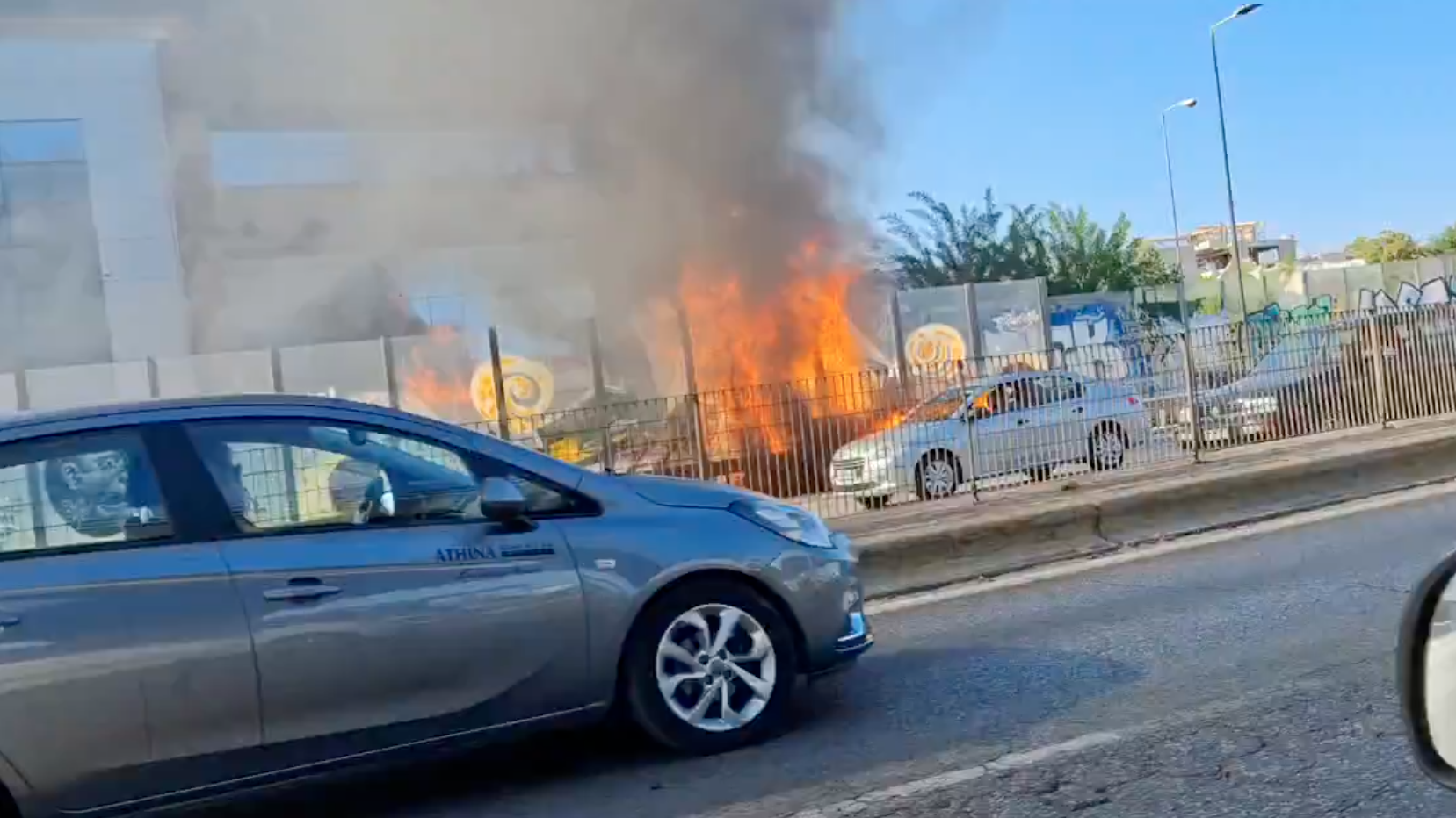 Στις φλόγες έχει τυλιχτεί ένα αυτοκίνητο στη λεωφόρο Κηφισού, στο ύψος της οδού Αγάθωνος.