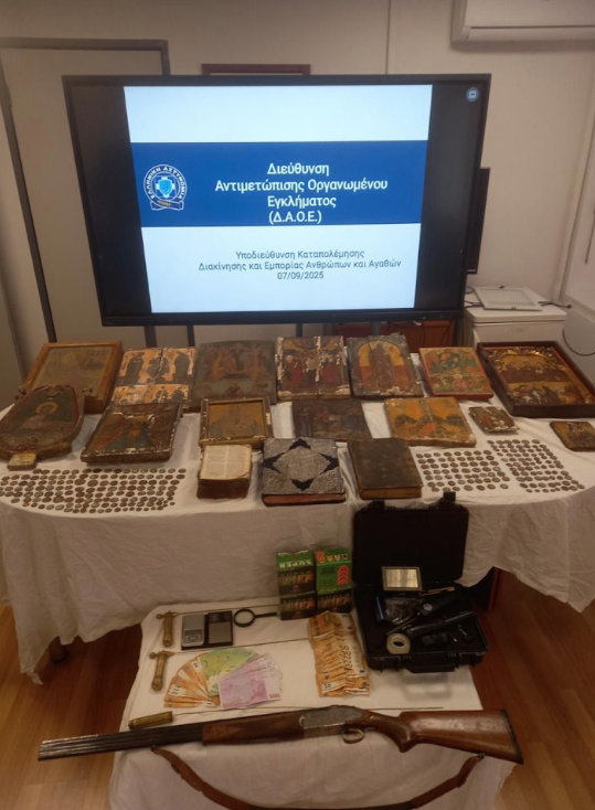 Σύμφωνα με πληροφορίες, ο αρχηγός της σπείρας προόριζε 14 βυζαντινές εικόνες και δύο Ευαγγέλια για δημοπρασίες σε Γερμανία και Κύπρο.