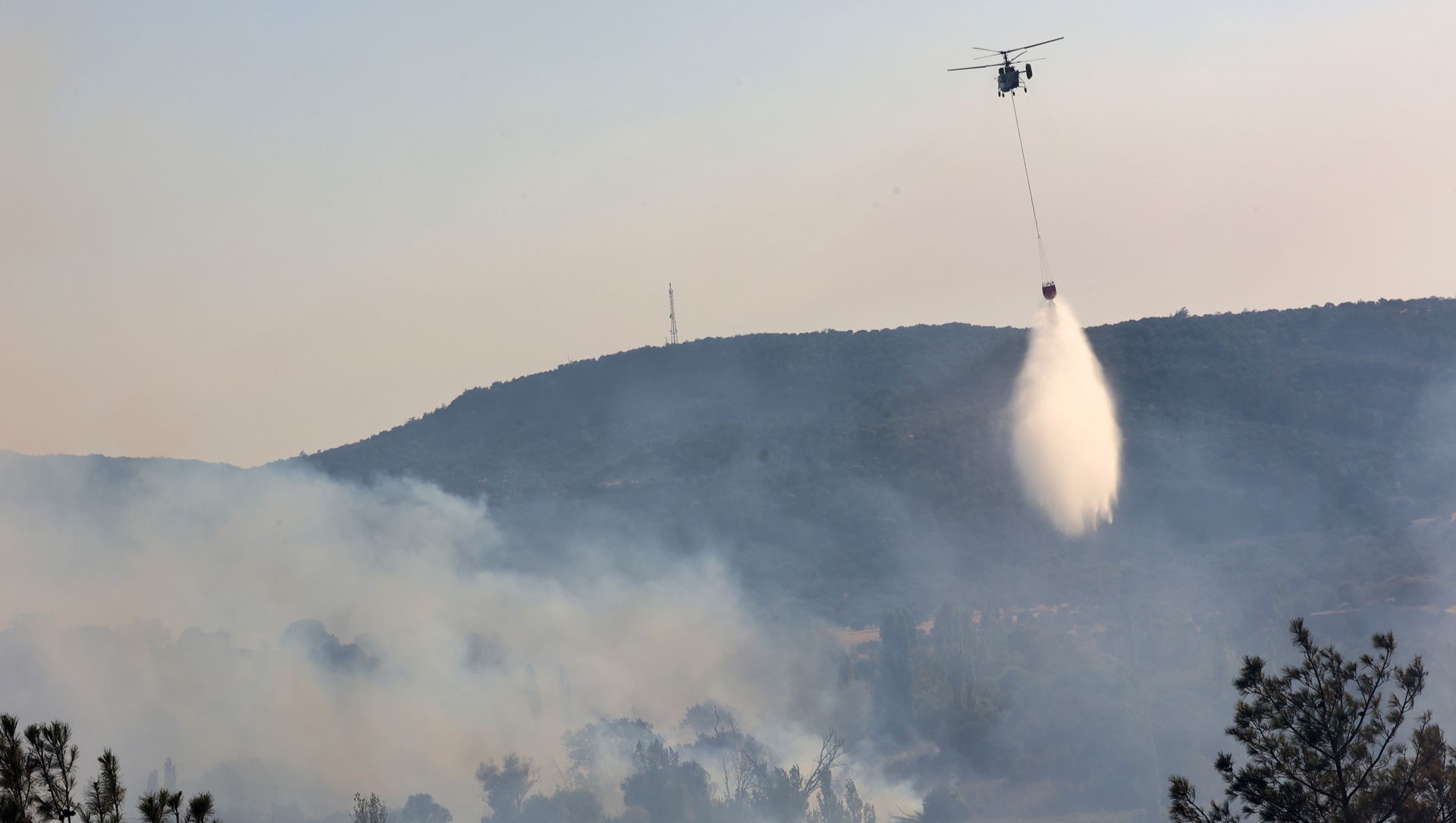 Στην κατάσβεση της φωτιάς επιχειρούν από αέρα δύο αεροσκάφη και ένα ελικόπτερο, σύμφωνα με την πυροσβεστική.